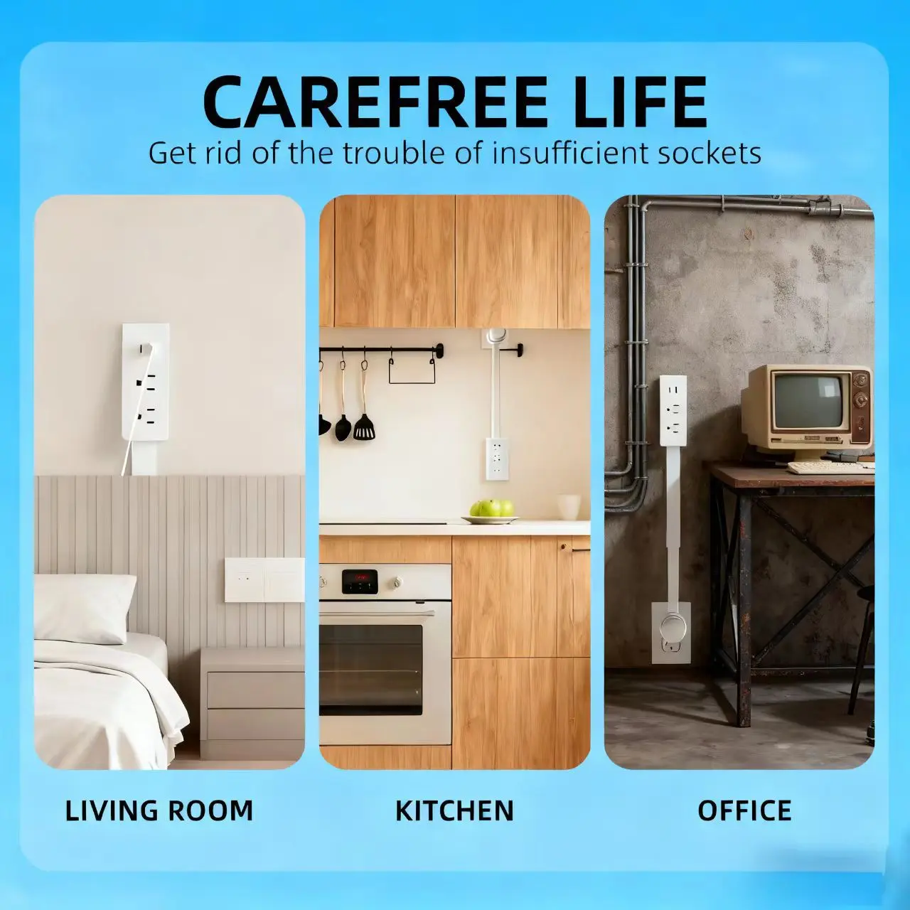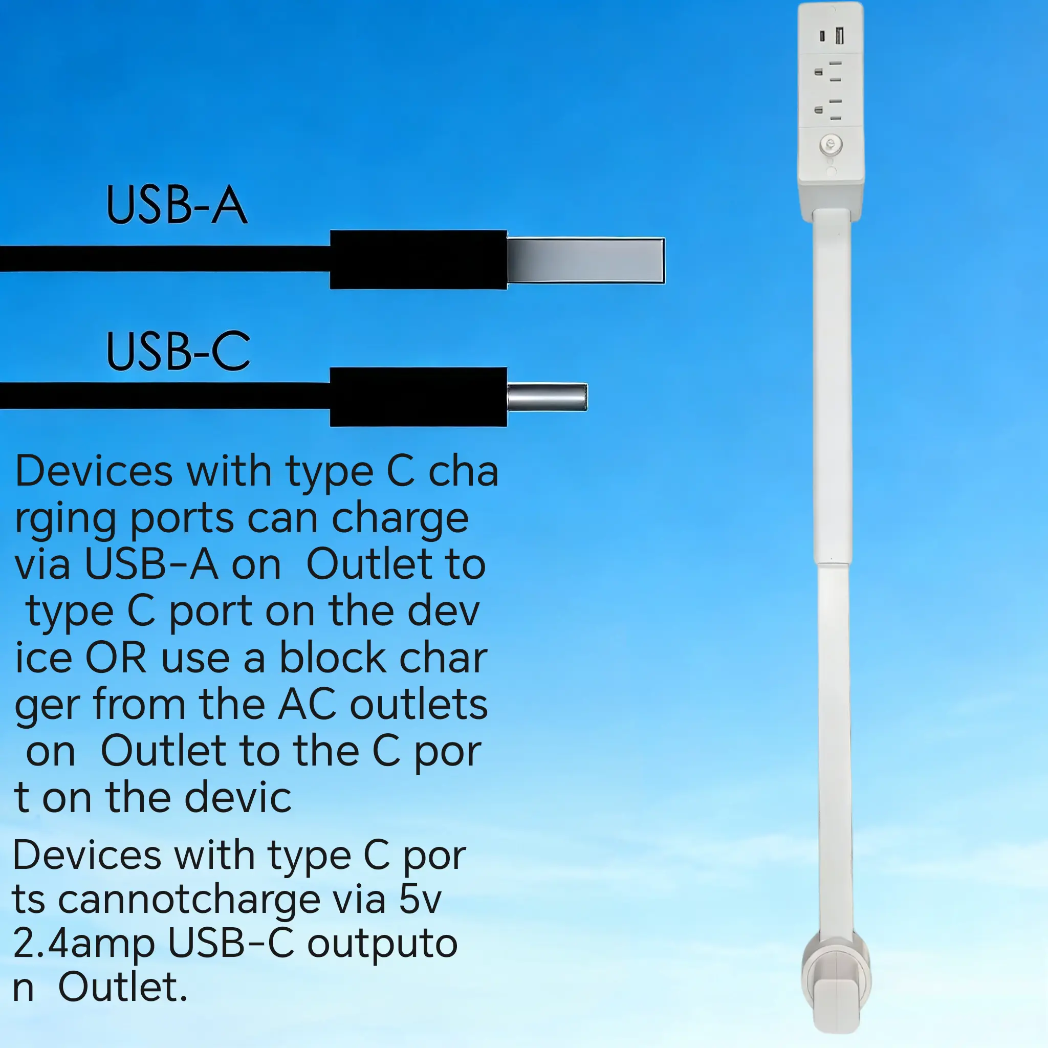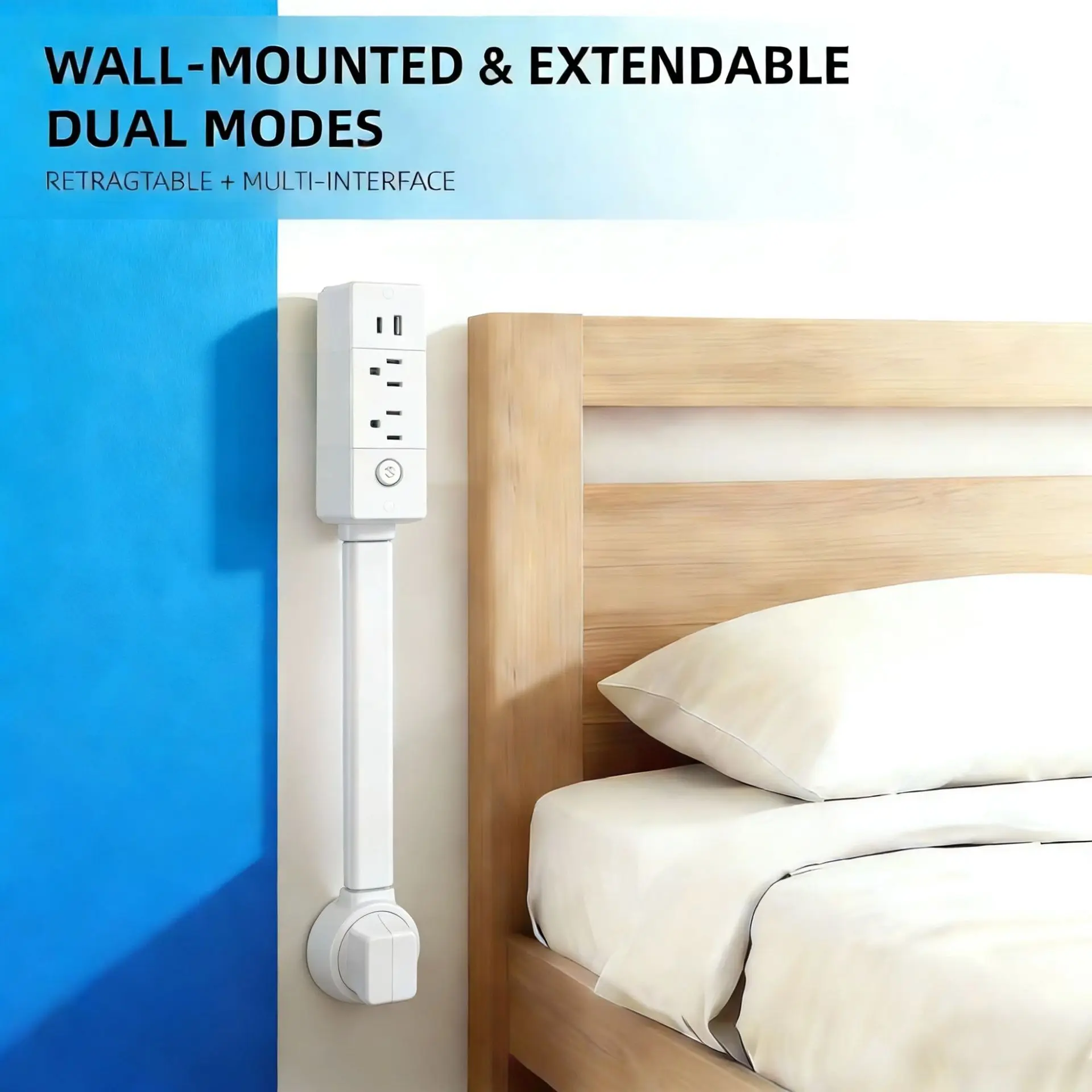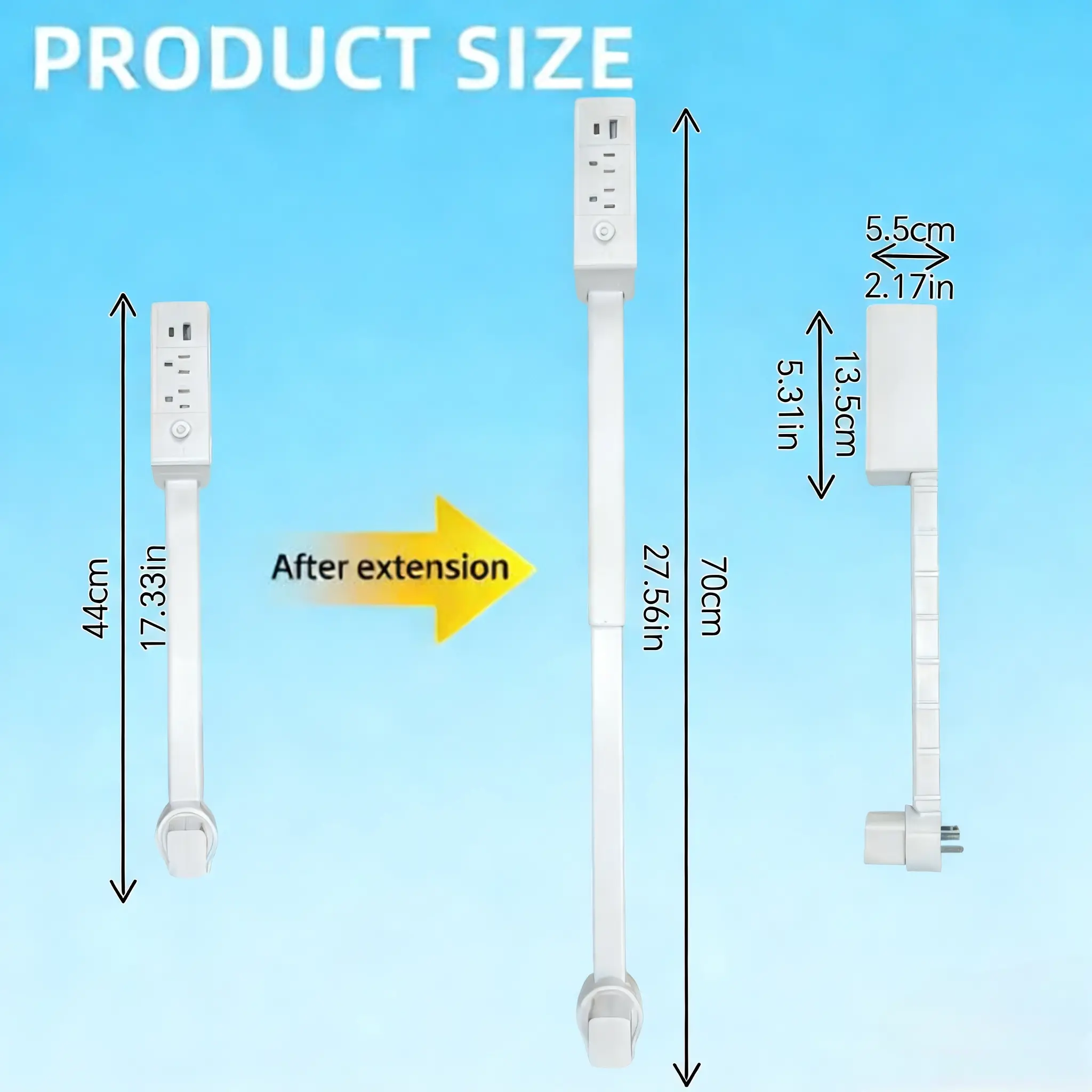 Outlet Extender Outlet electrical Mountable Multi Plug Wall Outlet, with USB-A USB-C & 2 AC, Extendable 22-34" Rotatable 180° Surge Protector Power Strip,UL-certified power cord,ideal for behind furniture in home/office