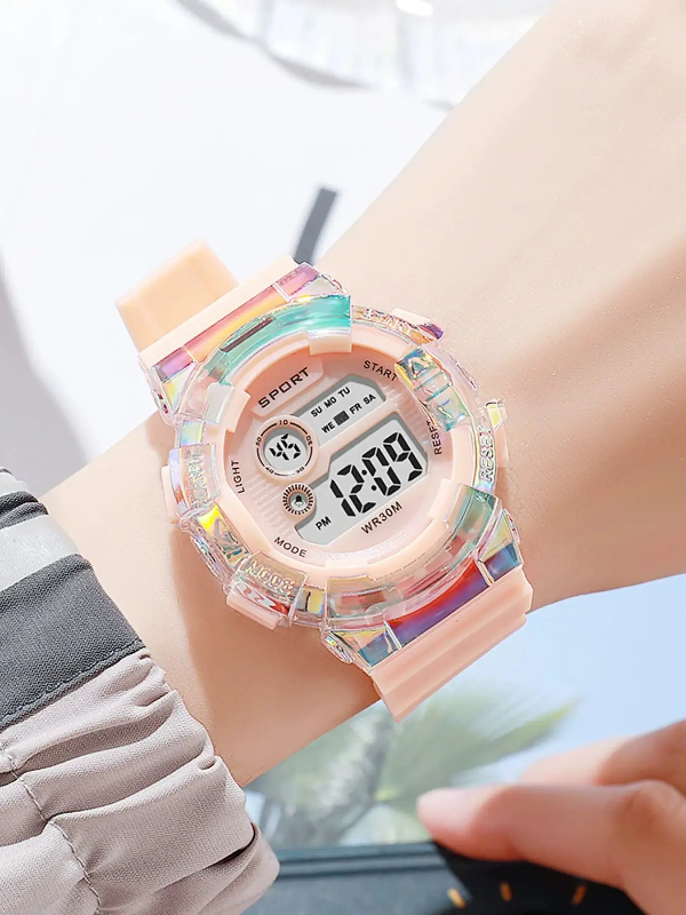 New Student Electronic Watch, Macaron Gradient Color, Outdoor Waterproof Multifunctional Sports Watch, Trendy Wristwatch