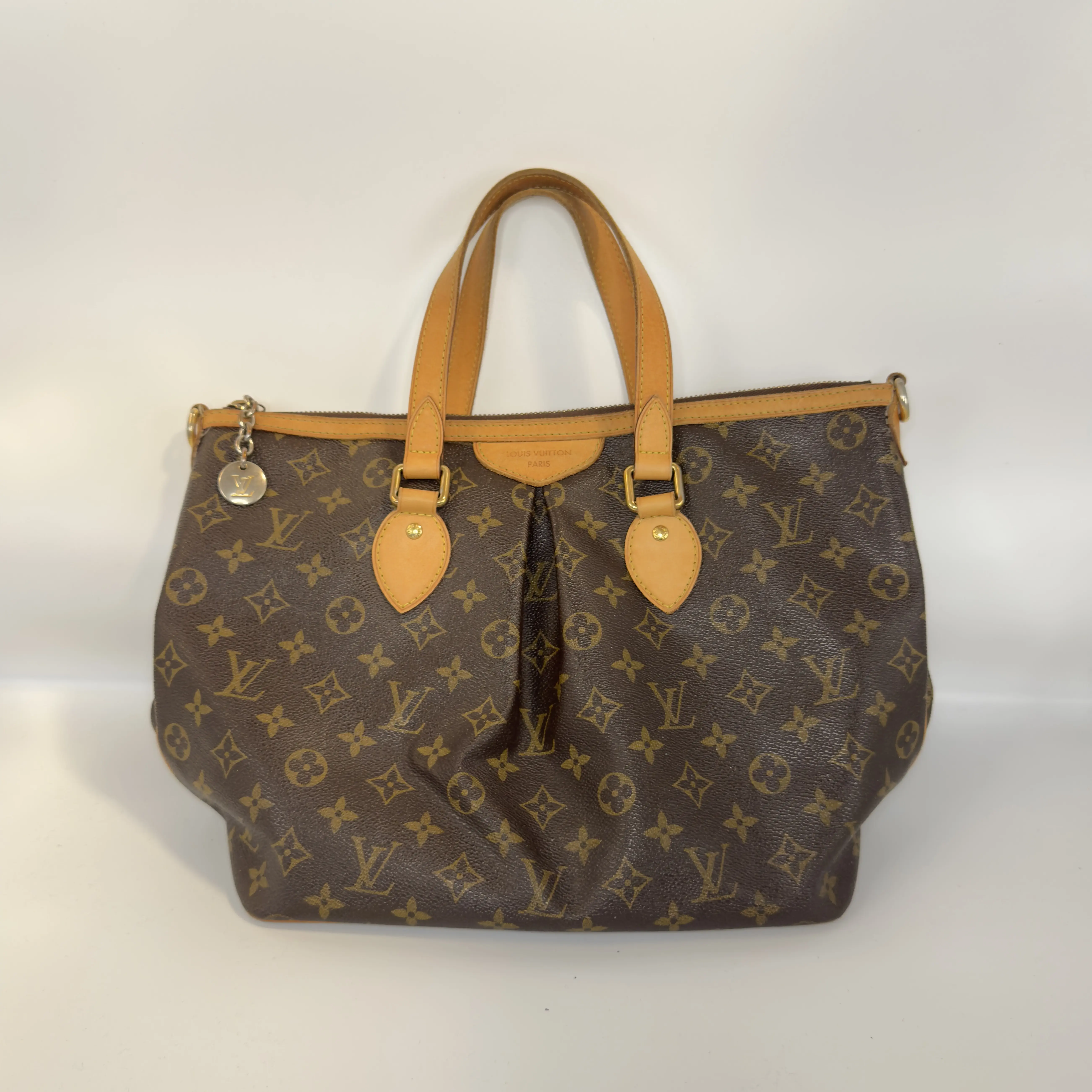 Pre-owned Louis Vuitton Vachetta leather Shoulder Bags LV Palermo PM Tote Bag Brown Monogram Canvas with Tan Leather Accents and Gold Hardware