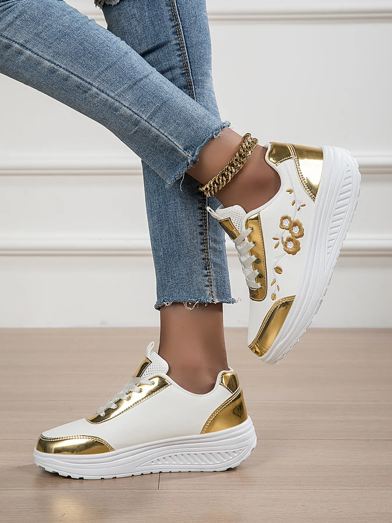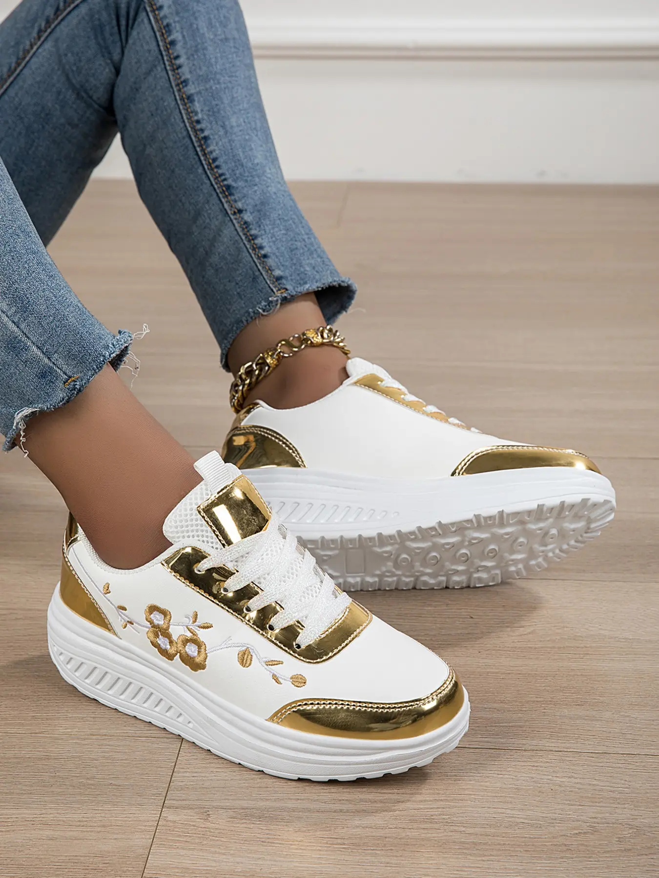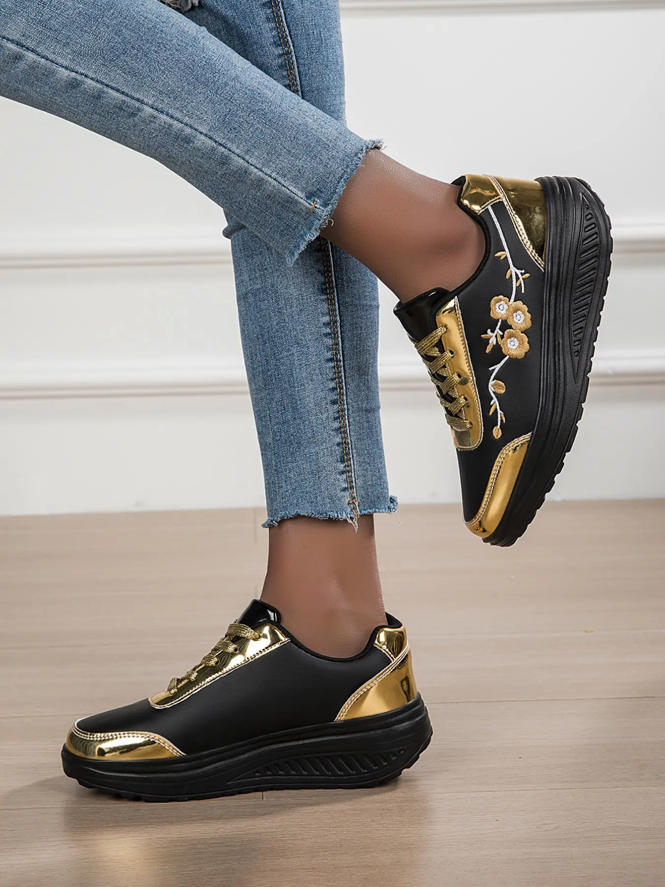 Women's Fashion Thick Sole Shoes, Embroidered Trendy Soft Bottom Casual Shoes, Daily Versatile, Perfect for Street Style