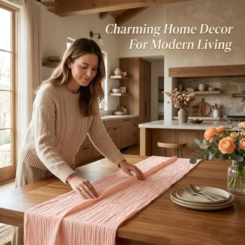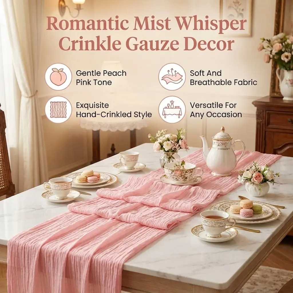 Polyester Pleated Table Runner, Boho Style Tablecloth, Rural Decor, Wedding Decoration, Gift Event, Festival Party
