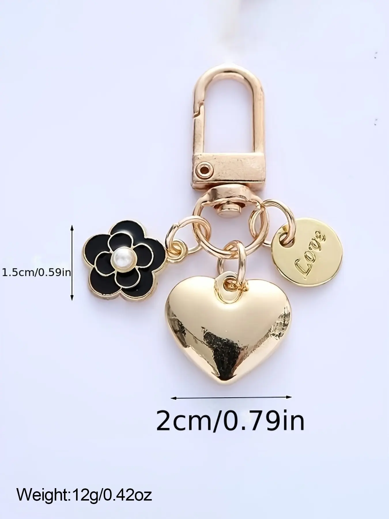 Fashion Heart Love Keychain Pendant, Imitation Pearl Camellia Letter Metal Accessory, Women's Bag Charm, All Seasons Cute Style