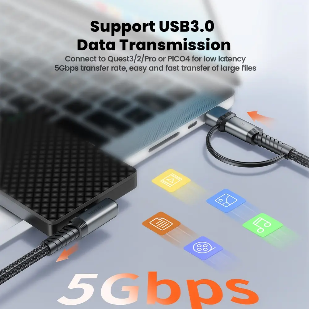 Connect to Quest3/2/Pro or PICO4 for low latency 5Gbps transfer rate, easy and fast transfer of large files