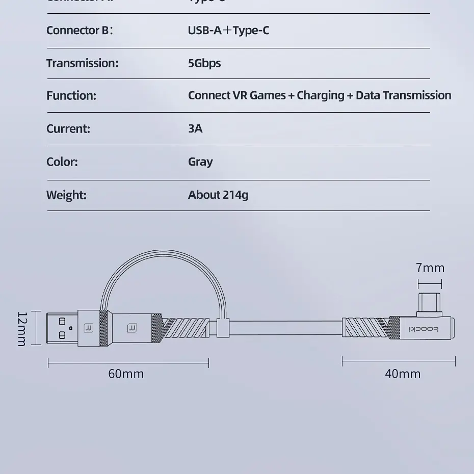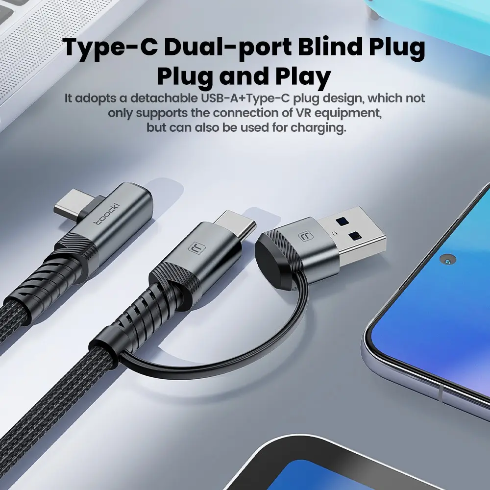 It adopts a detachable USB-A+Type-C plug design, which not only supports the connection of VR equipment, but can also be used for charging.