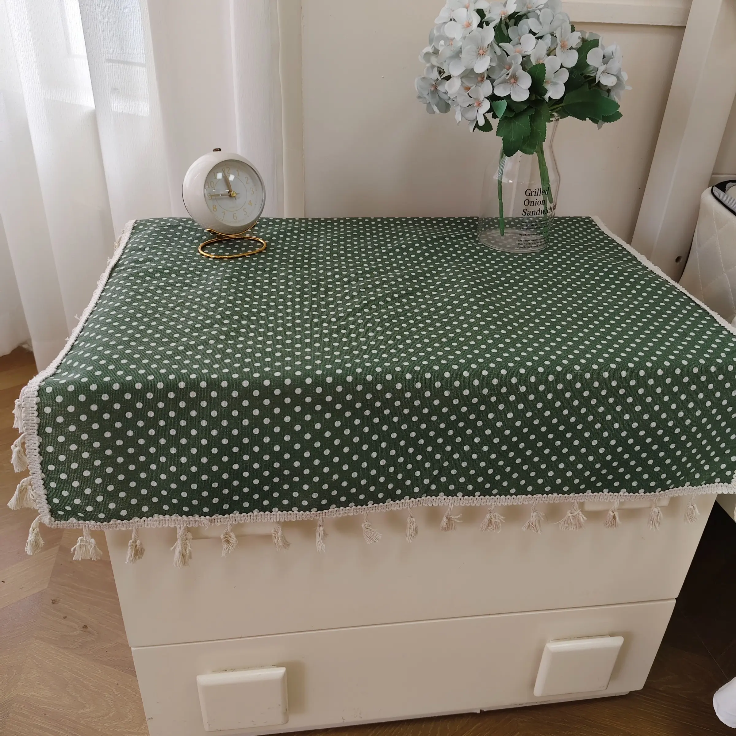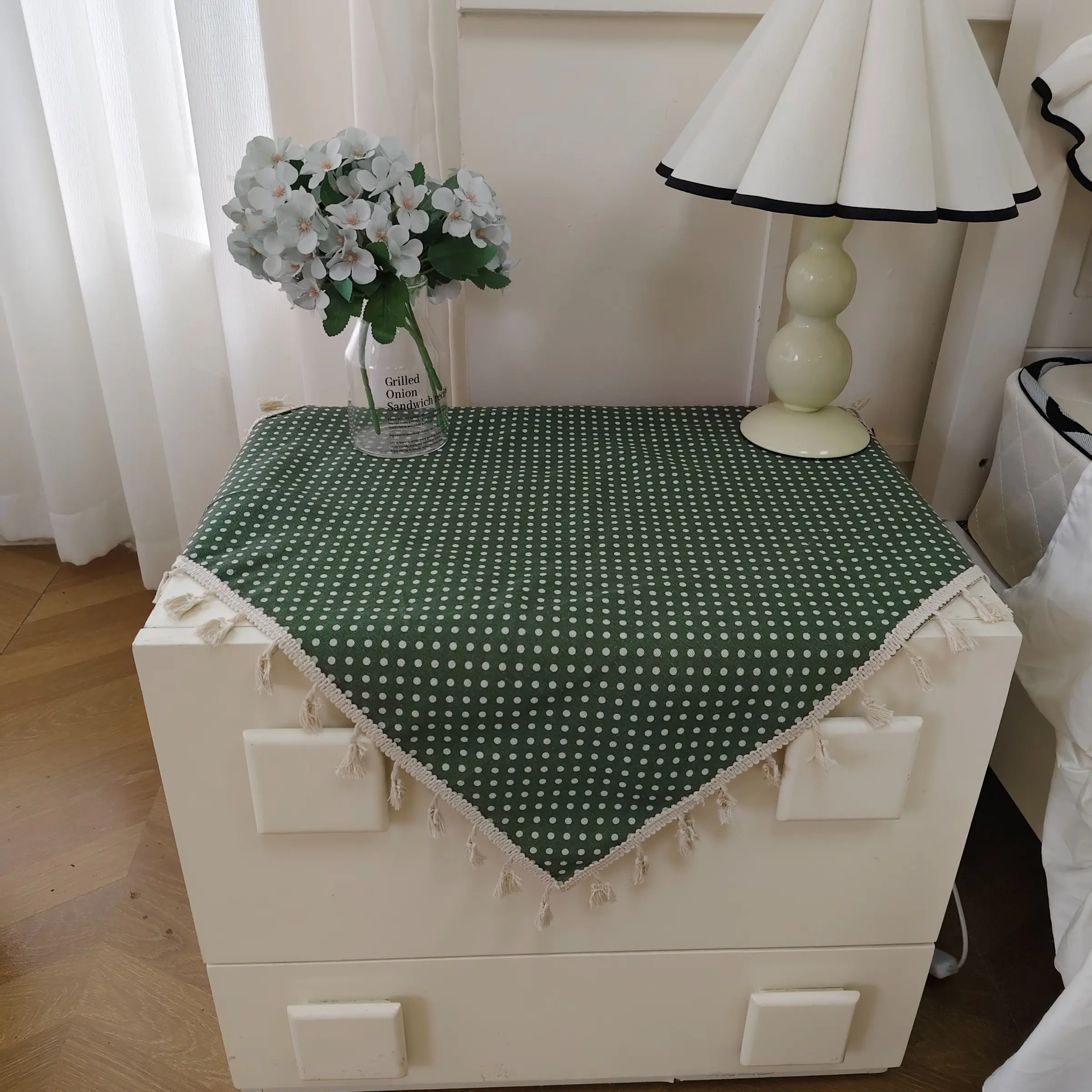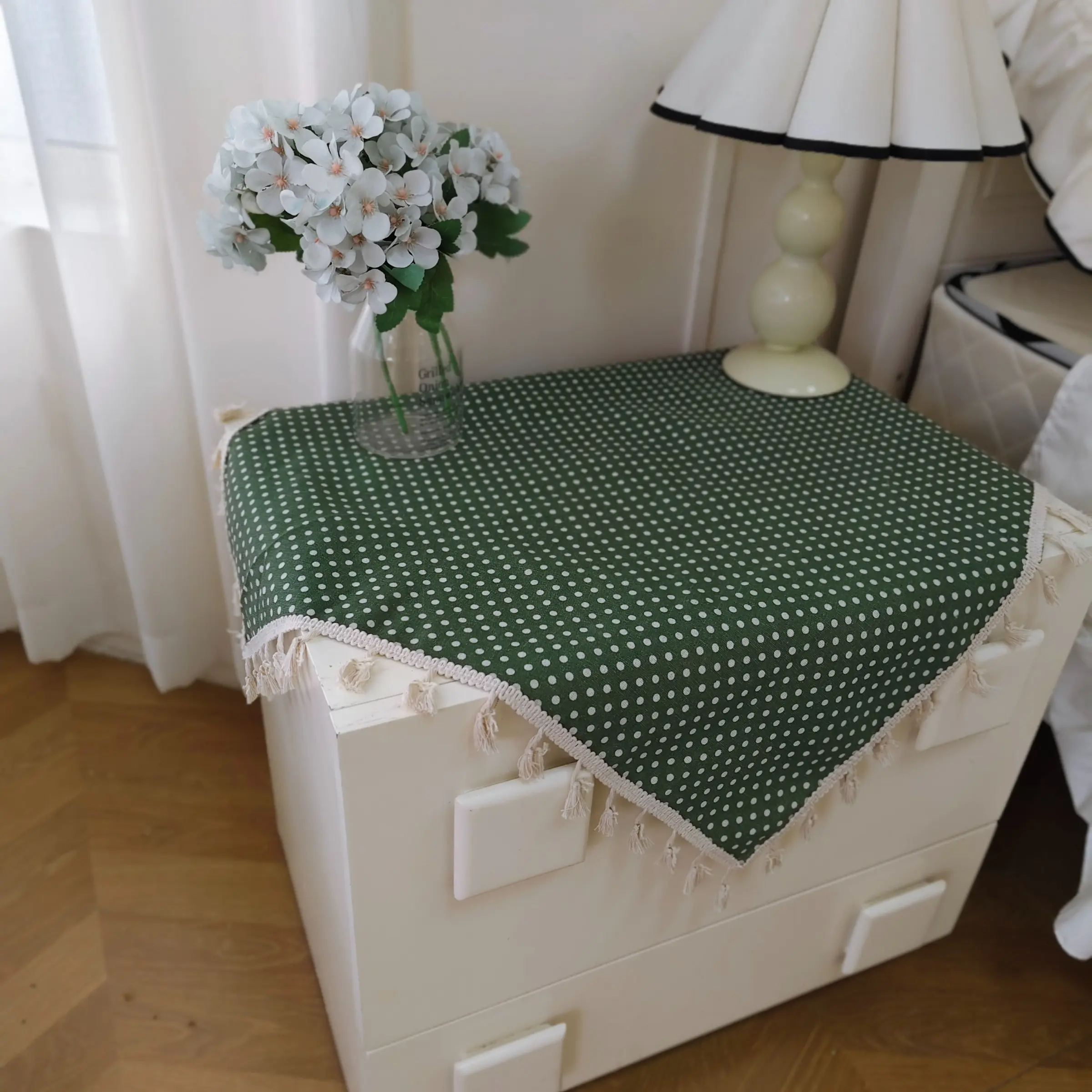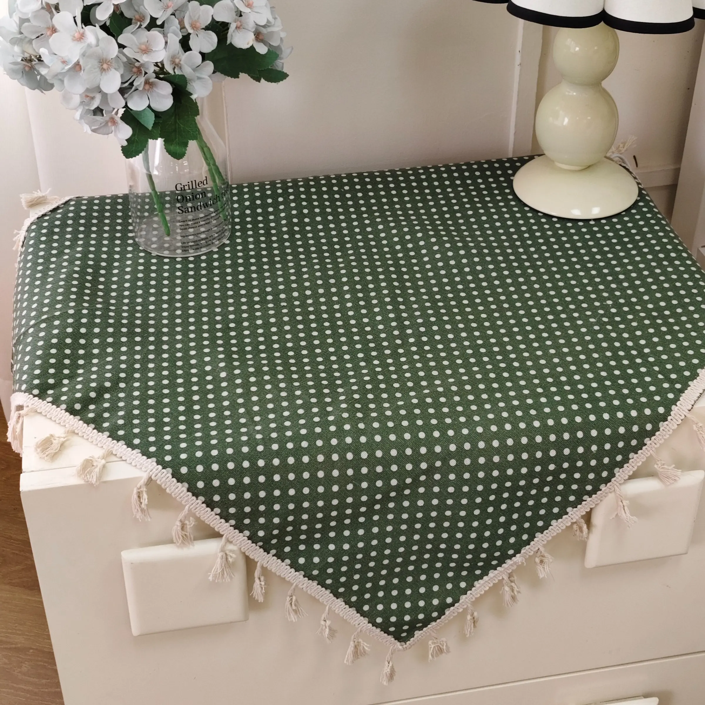 [Pattern]: Adopt a green background and white dot pattern design to add a spring atmosphere to your home.
