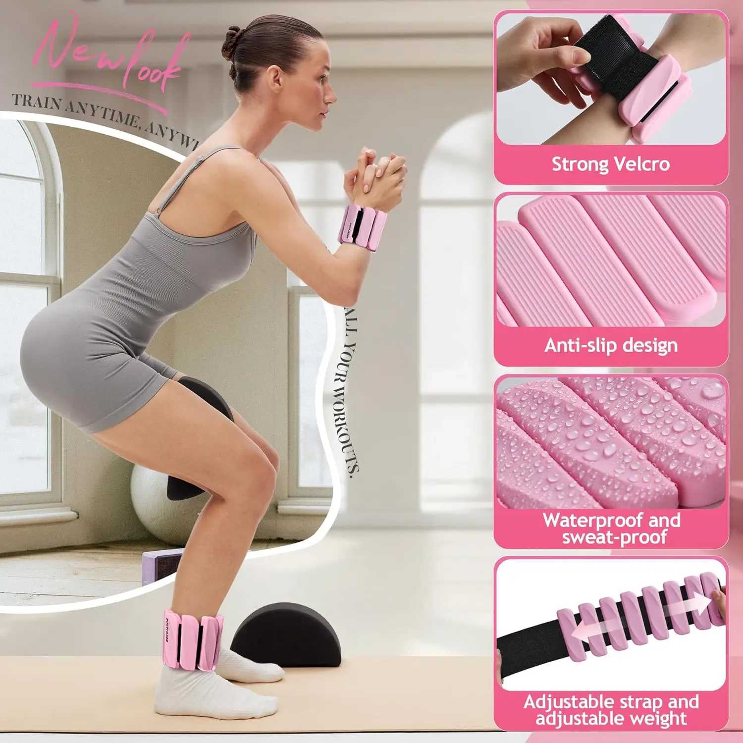 AGS Ankle Weights Set of 2 (1 lb/2 lb Each) for Women Men Adjustable Wrist Bracelet for Home Gym Weighted Bangles Wristbands Leg Arm Weights for Walking Swimming Running Pilates Yoga Gym