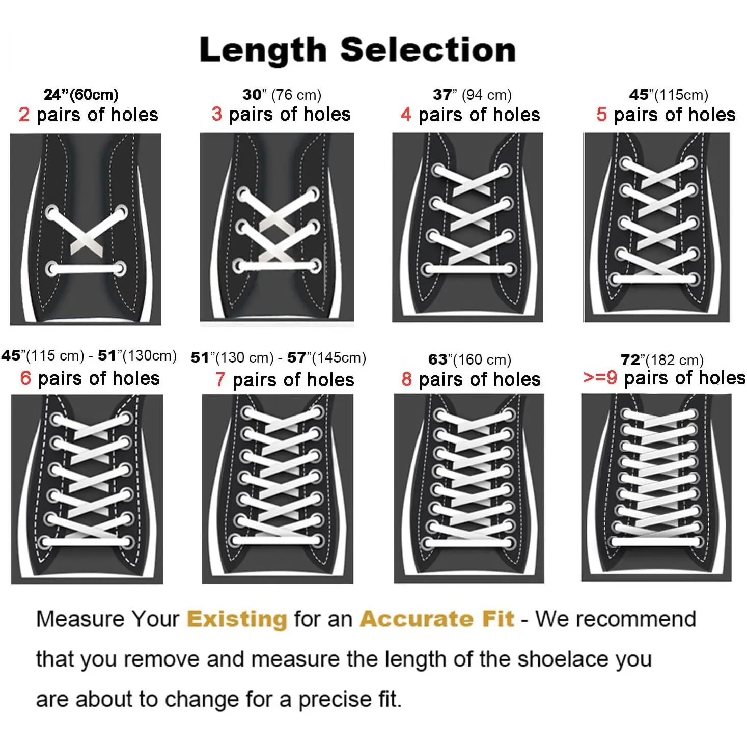 ·Shoe Strings Size: 24",30", 37", 45", 51", 57",63",72"(The 24" and 30" lengths are only suitable for kids's shoes with minimal eyelets or adults shoes with only 2-3 pairs of holes)