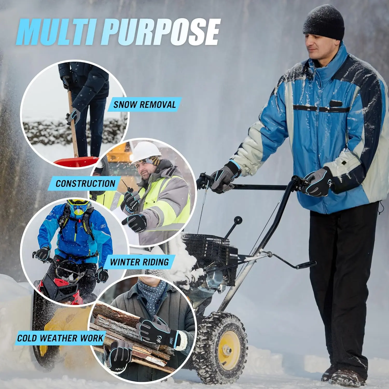 · Are these gloves only for skiing?I need them for shoveling snow, outdoor work, and driving in the cold. No, they are versatile winter work gloves perfect for shoveling snow, skiing,Or perhaps cycling, driving, motorcycling, walking, riding, hiking, golfing, fishing, keeping you warm and dry during all cold weather activities.