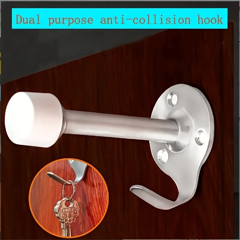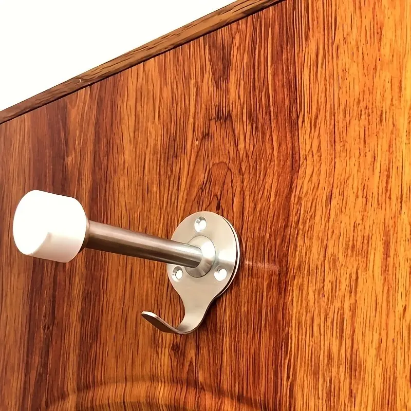 Wall-Mounted Screw-Fixed Door Stopper, Heavy-Duty Stainless Steel Door Stopper with Hook, Durable and Reliable Door Safety Device