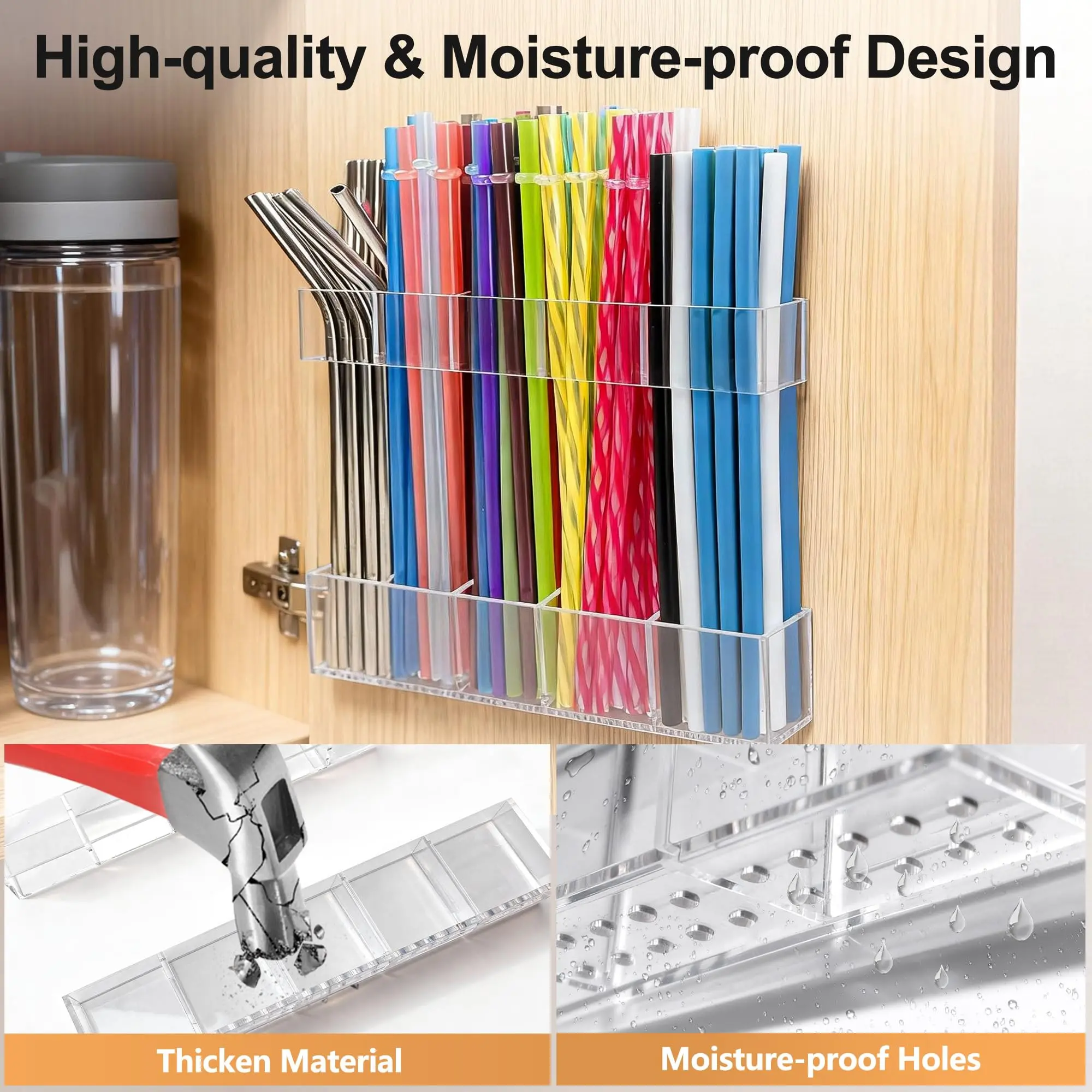 【Adjustable Design】: Easily adjust the straw holder to fit various cabinet door sizes for optimal storage.
