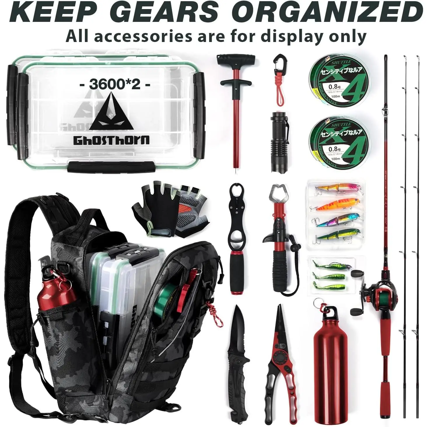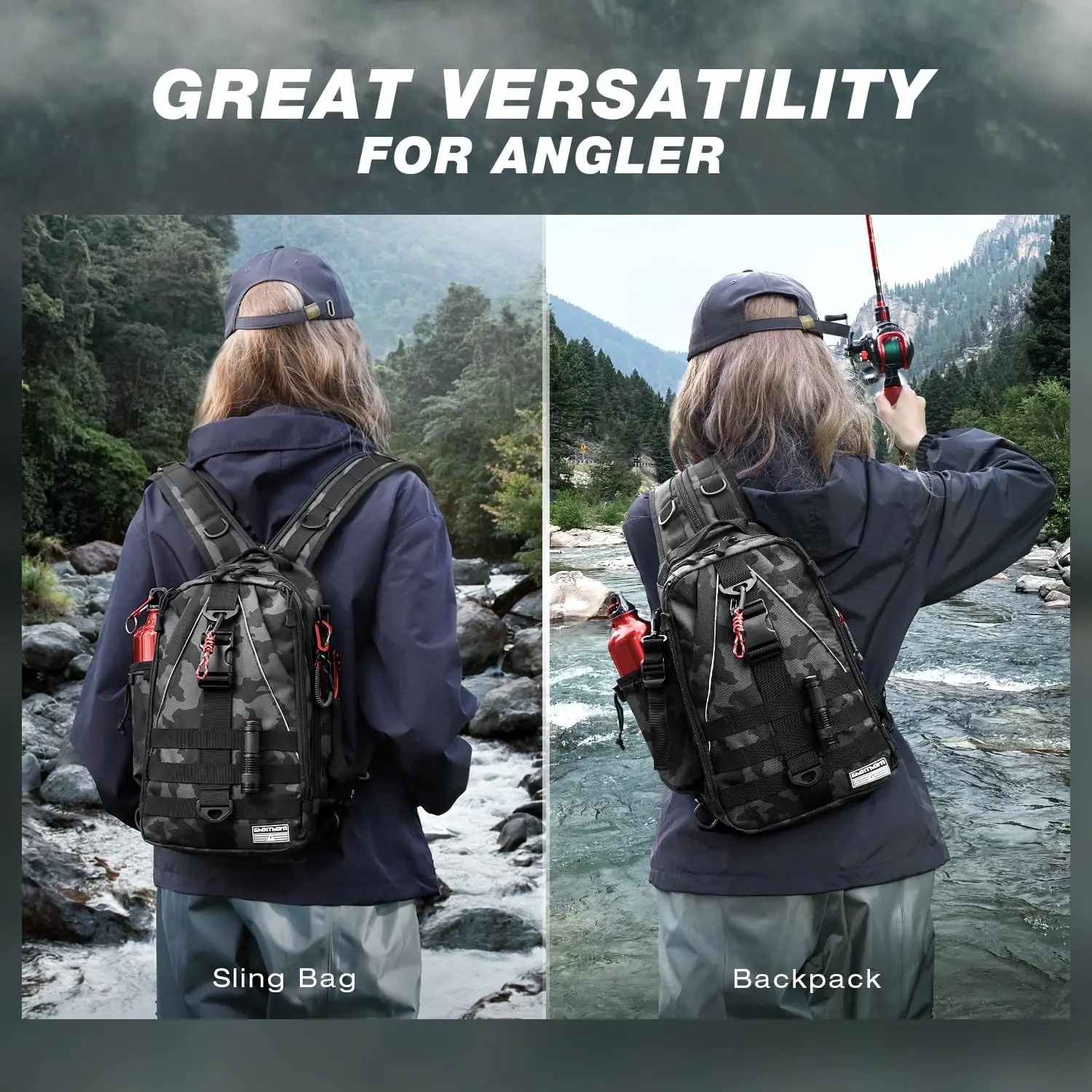 AGS Ghosthorn Fishing Backpack Tackle Sling Bag-Backpack with Rod Holder- Lightweight Tackle Box Fly Fishing Gifts for Men Women
