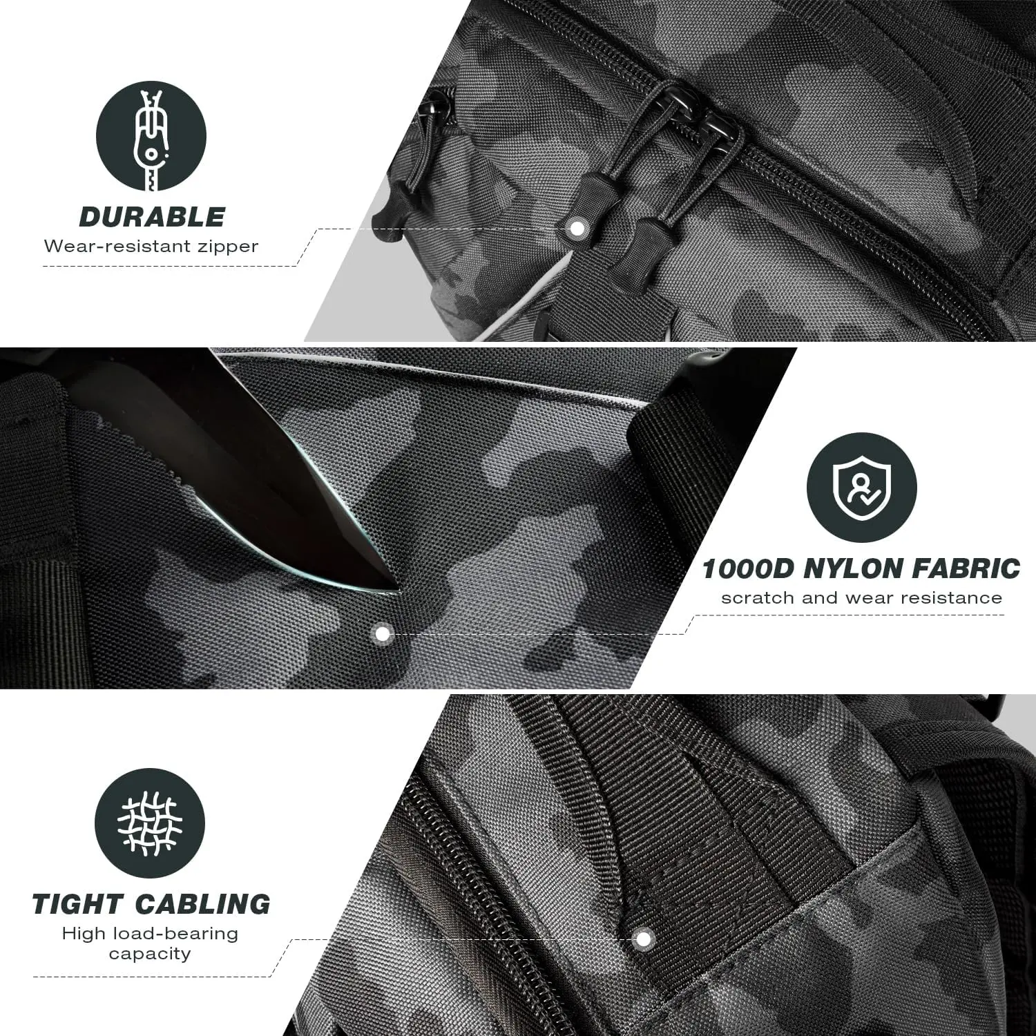 The abrasion resistant curved zipper pull is durable and ergonomic designed
