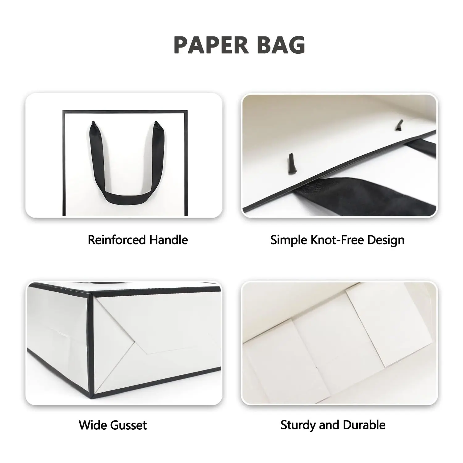 Paper bag: Made of high-quality thick kraft paper, carefully processed. Braided handles are stronger than standard handles and offer a more luxurious look. The square bottom allows the bag to stand upright on its own.