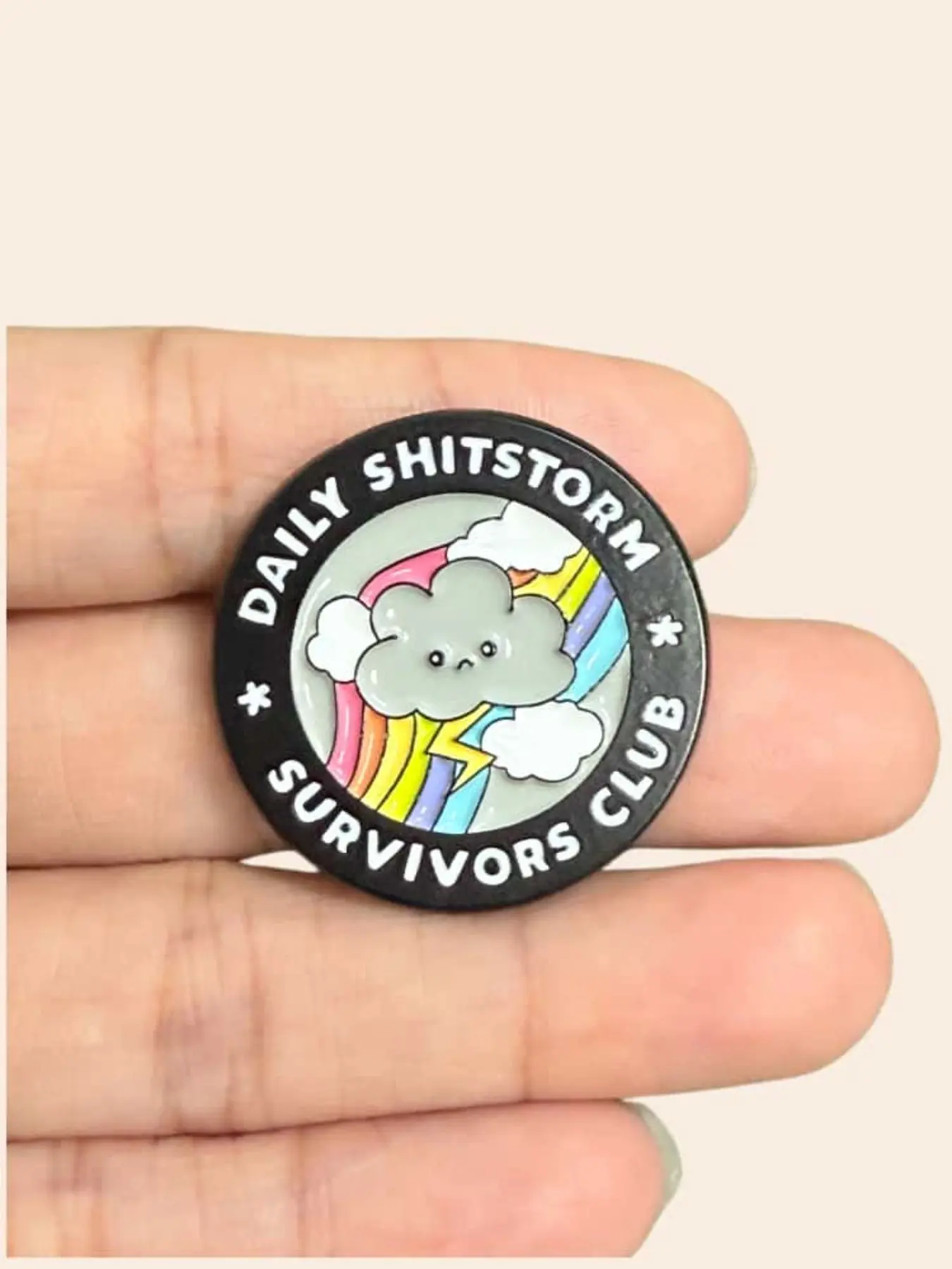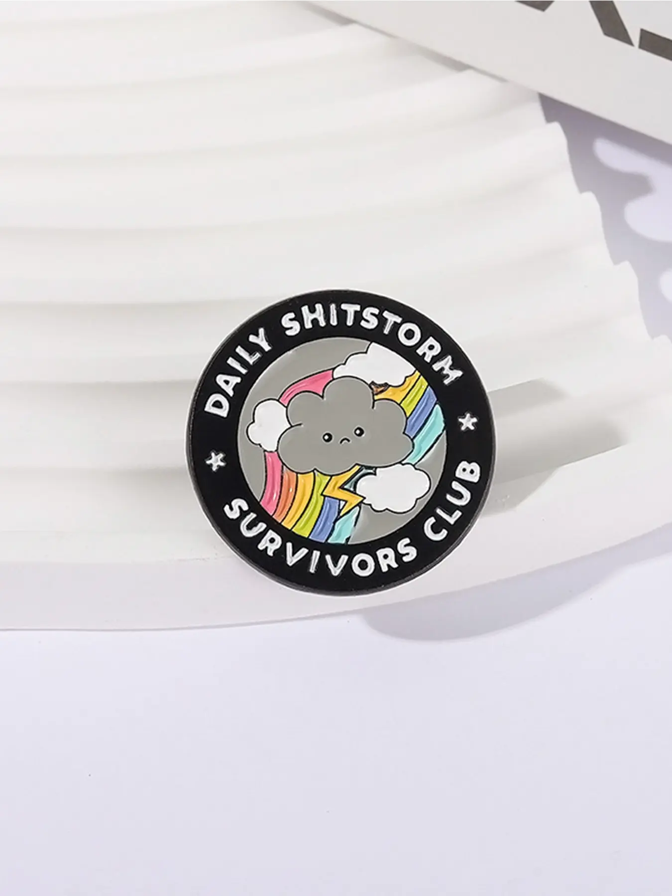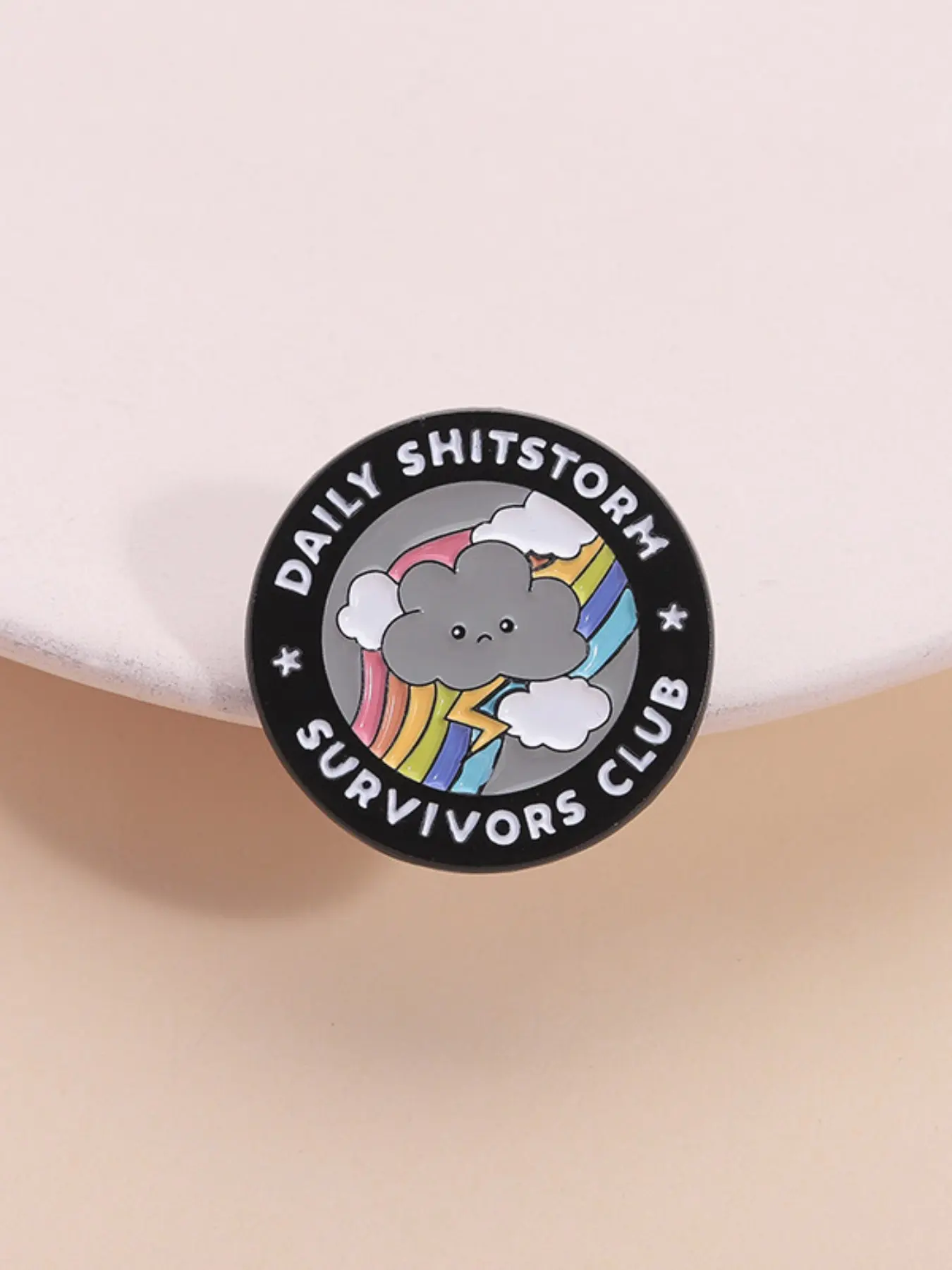 Rainbow Cloud Brooch, Daily Shitstorm Survivors Club, Humor Style, Lightning Rainbow Design, Stress Relief, Office Backpack Accessory