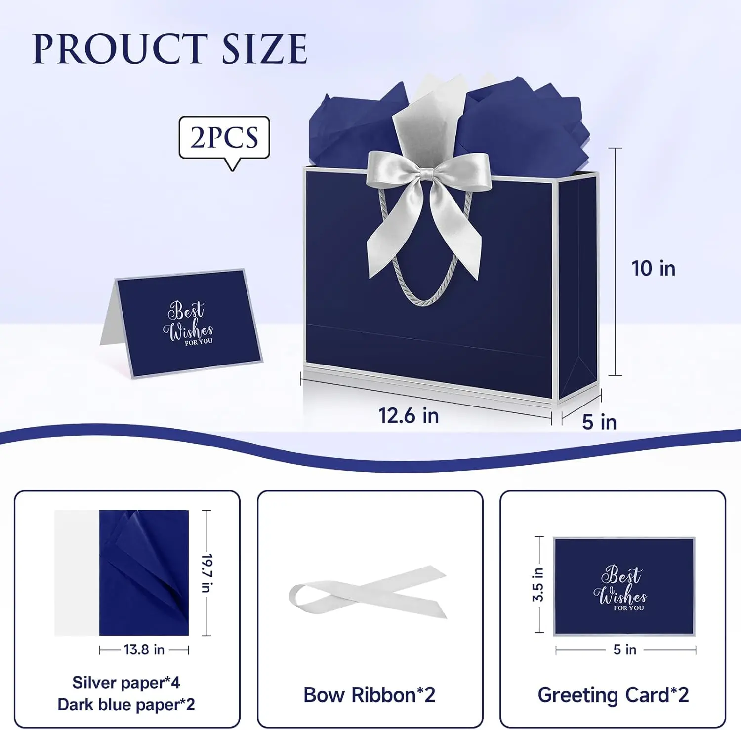 This gift bag with tissue paper measures 12.6 x 10 x 4 inches and features a sturdy construction that holds up to 10 pounds, Whether you're giving one substantial present or a collection of smaller items—from books and clothes to toys and cosmetics—it’s the perfect all-in-one solution.