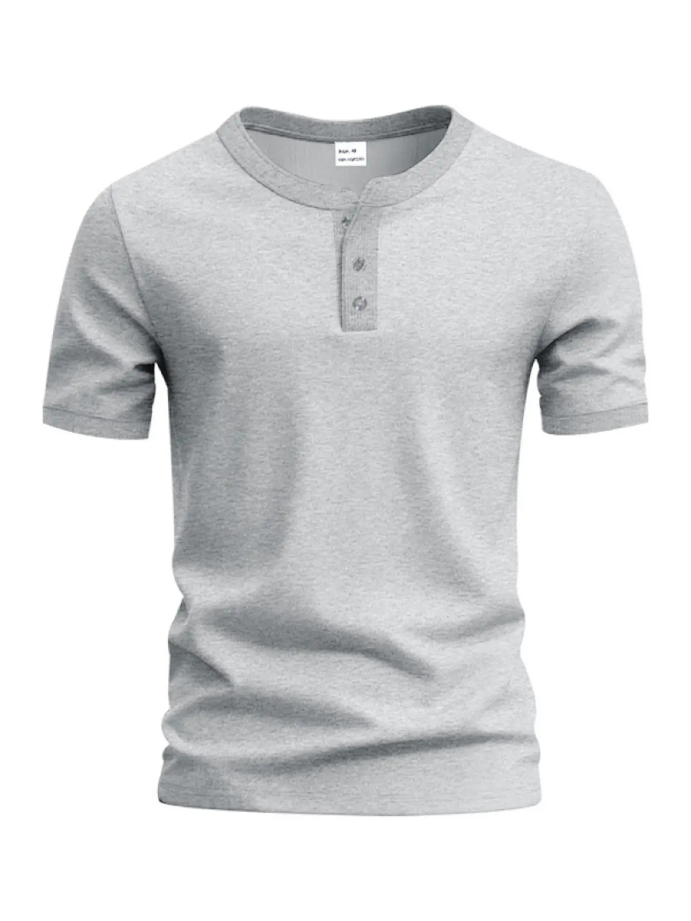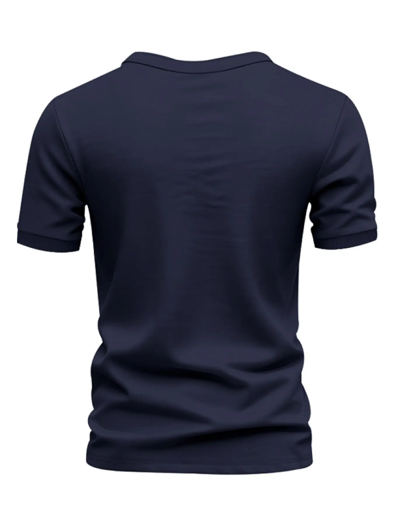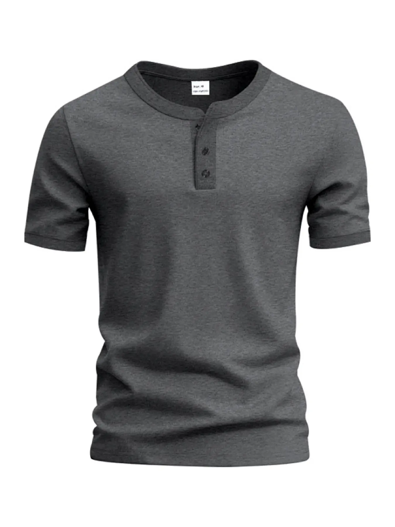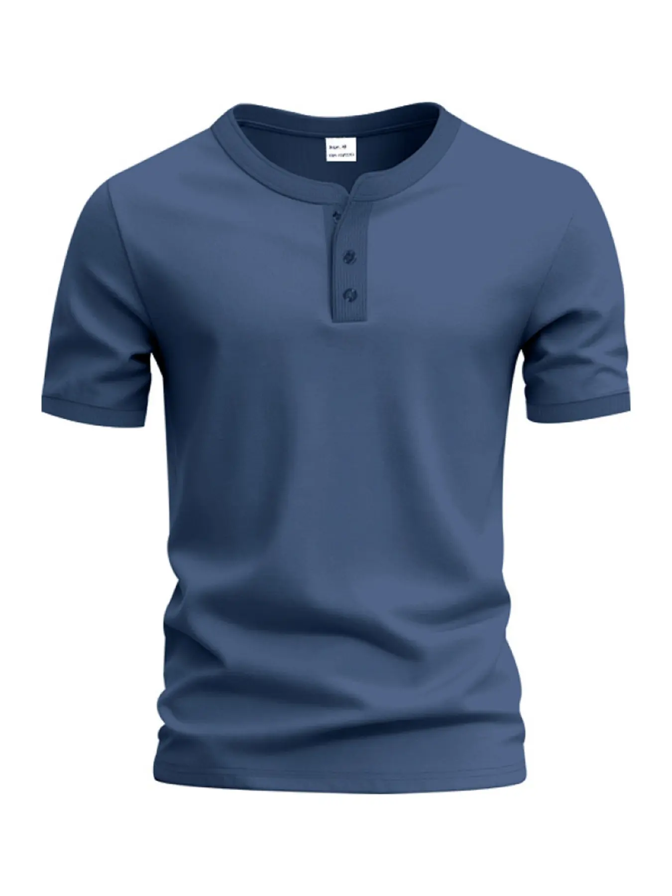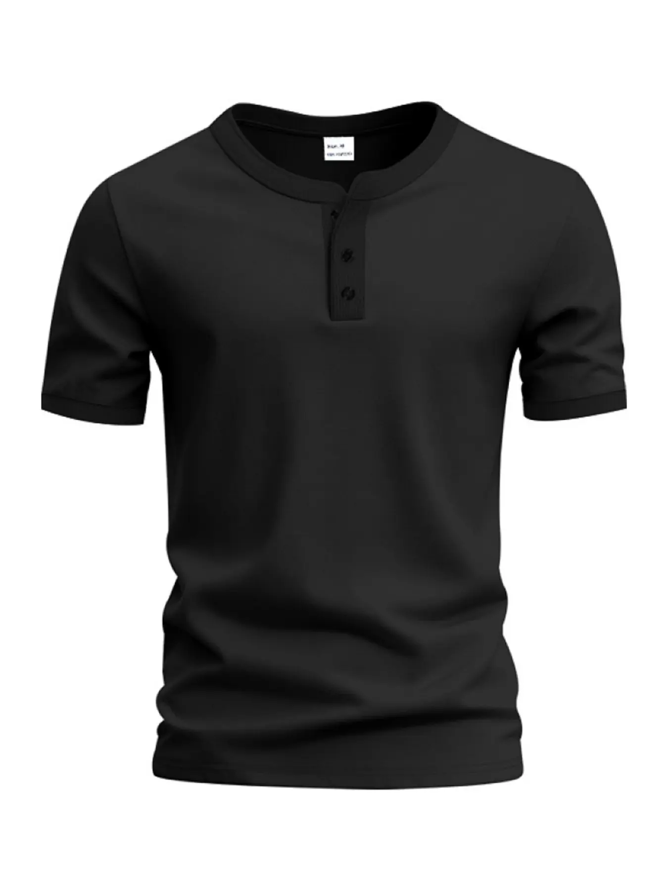 Men's Vintage Summer Loose-Fit Short Sleeve T-Shirt, Henry Collar Plain Color Quick-Dry Breathable, Casual Fashion for Men