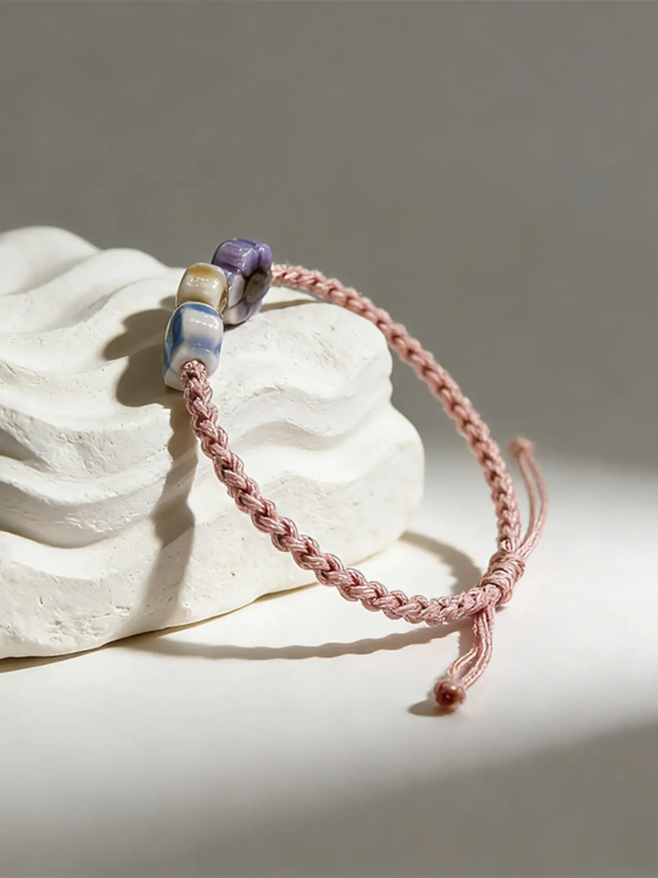 Handwoven Ceramic Bracelet with Floral Design,Ceramic
