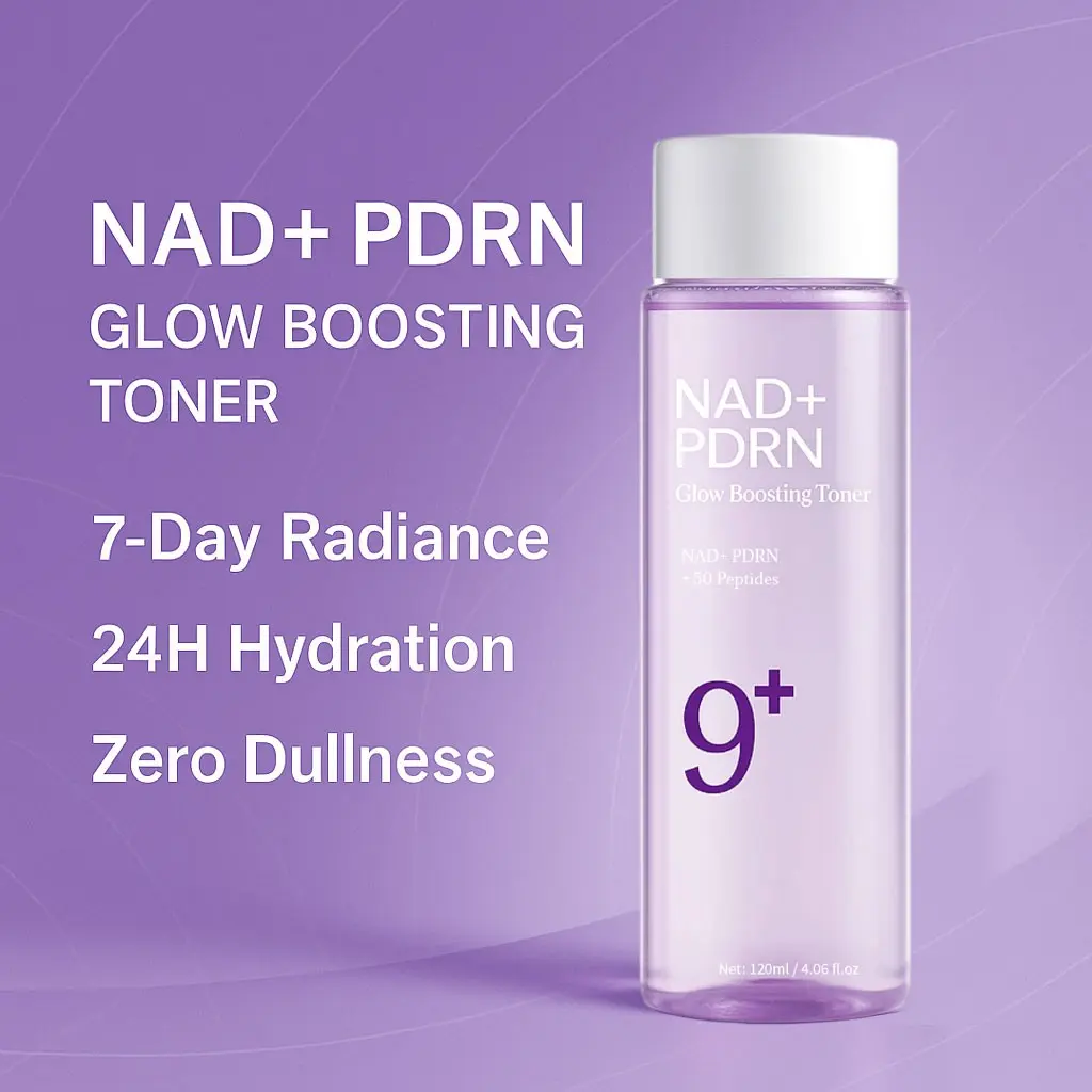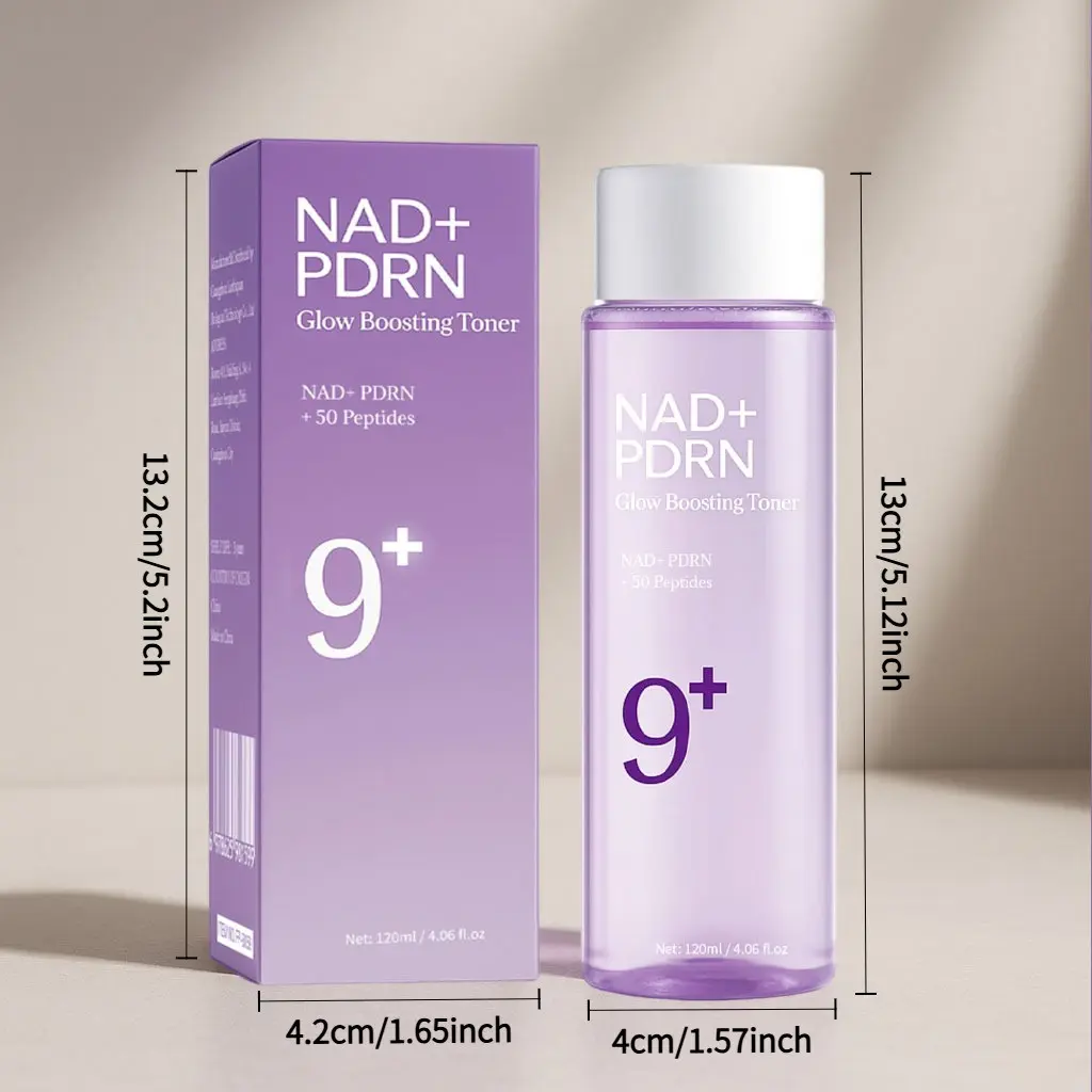 9+ NAD+ Salmon PDRN Glow Boosting Toner, NAD+PDRN+50 Peptides, Hydrating & Firming Toner for Wrinkles, Fine Lines & Dull Skin, Peptides & Salmon PDRN for Radiance, 4.06 fl.oz