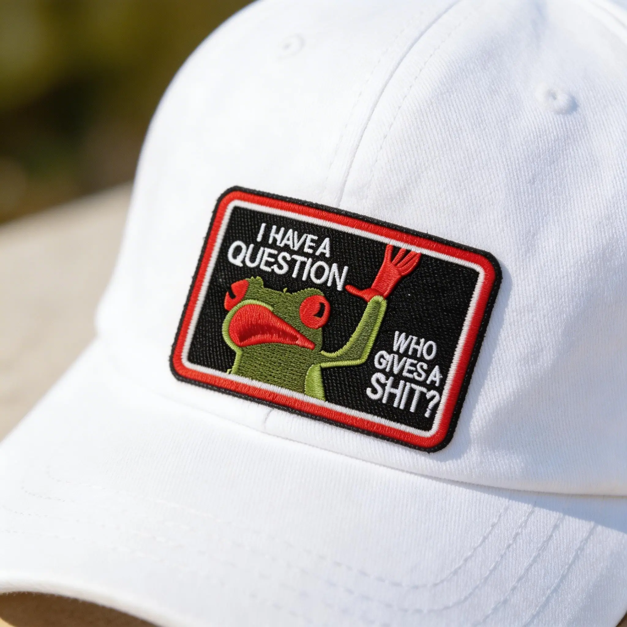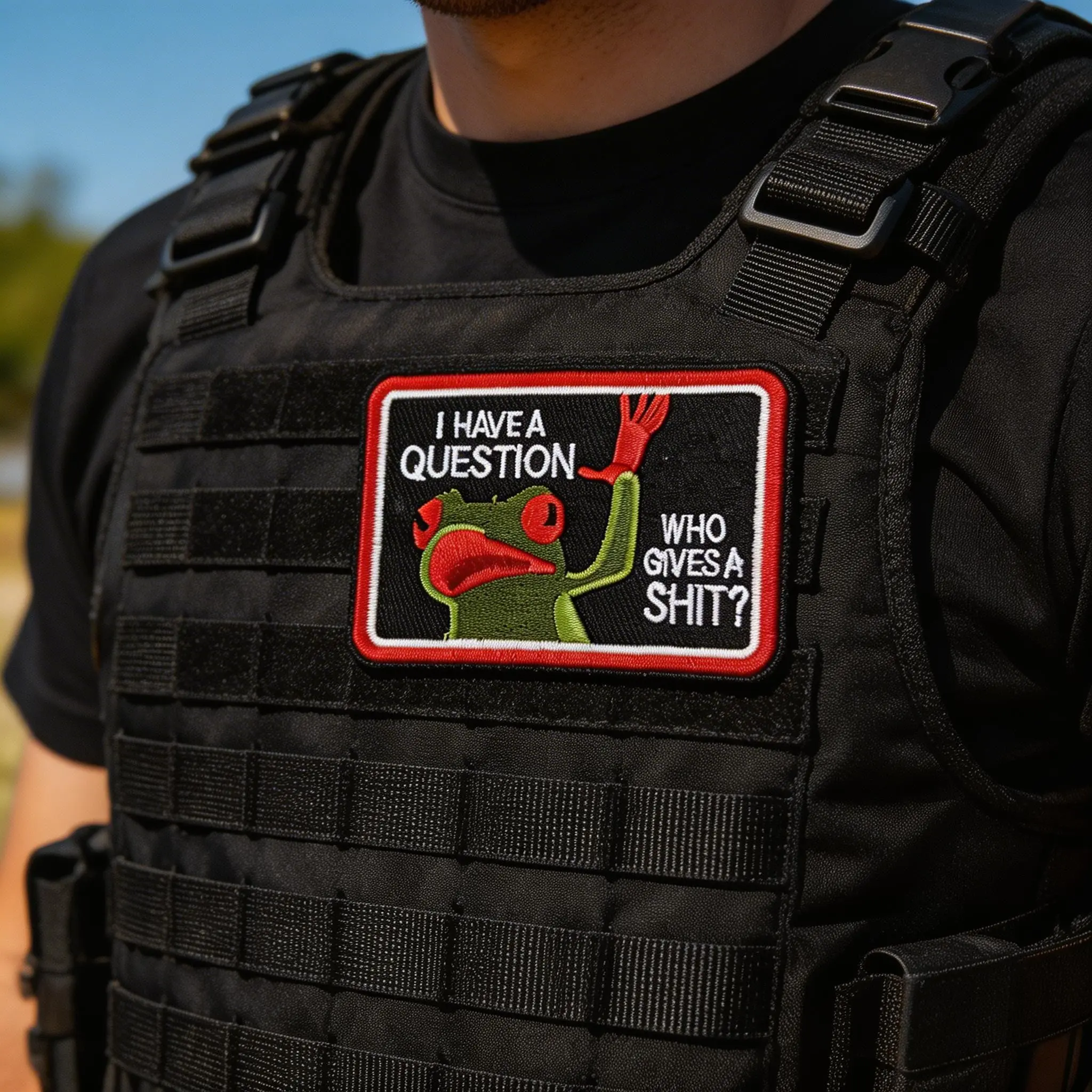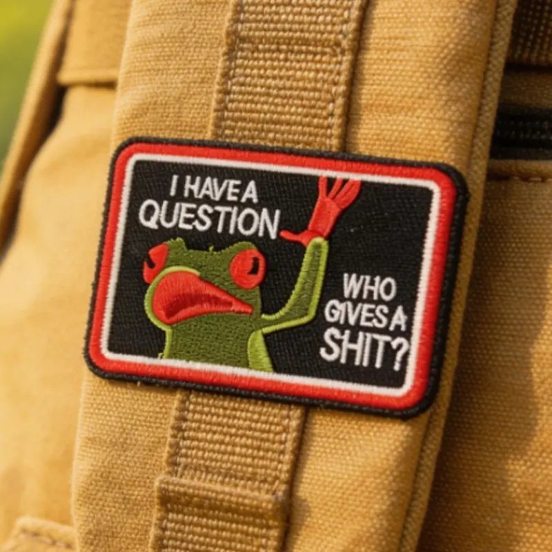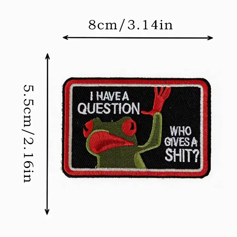 2PCS Funny Frog Velcro Patch – “I Have a Question… Who Cares?” Sarcastic Meme Badge for Backpack Jacket