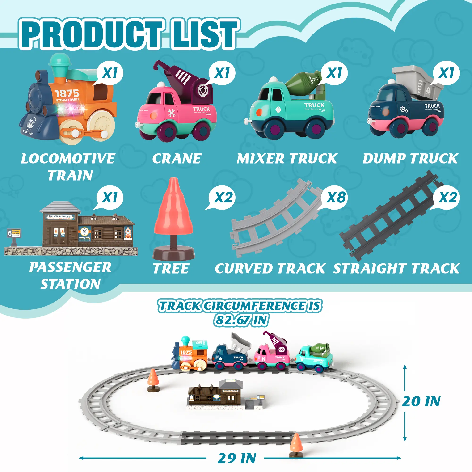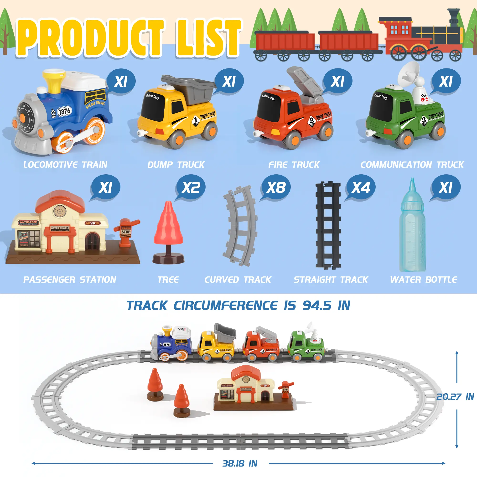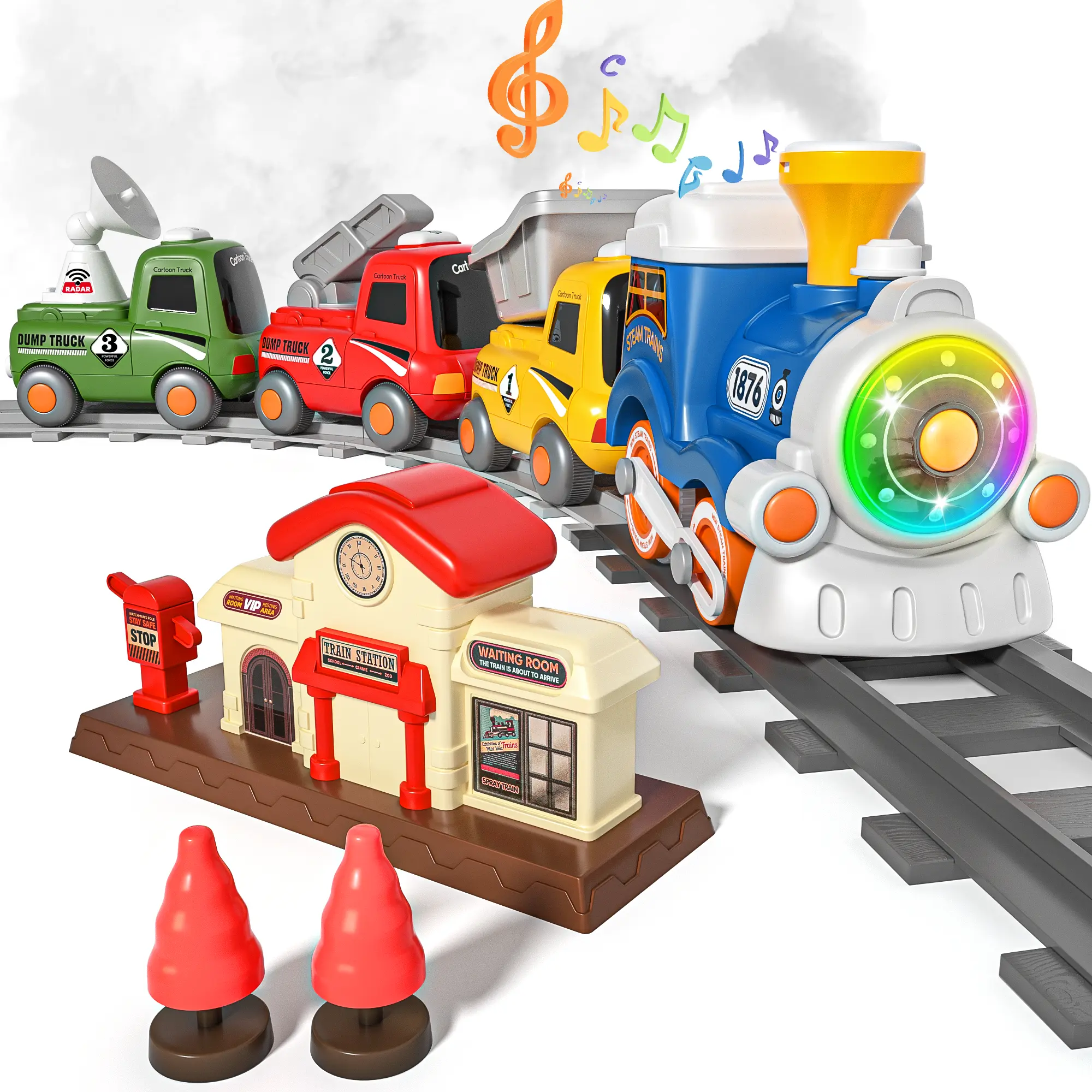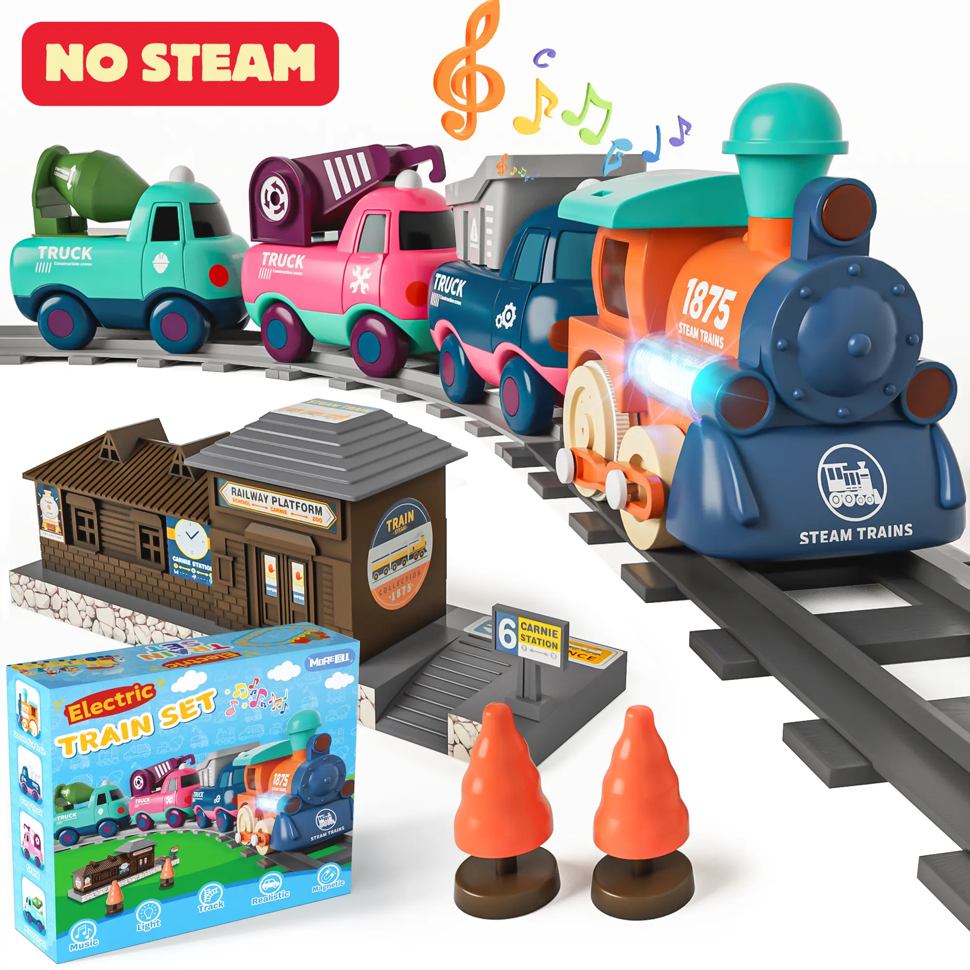 MORECOLL Train Set for Toddlers w/Steam, Music & Lights - First Choo Choo Train for Toddlers, Electric Train Set for Kids, Magnetic Train Toys, Christmas Birthday Gifts for Boys Girls