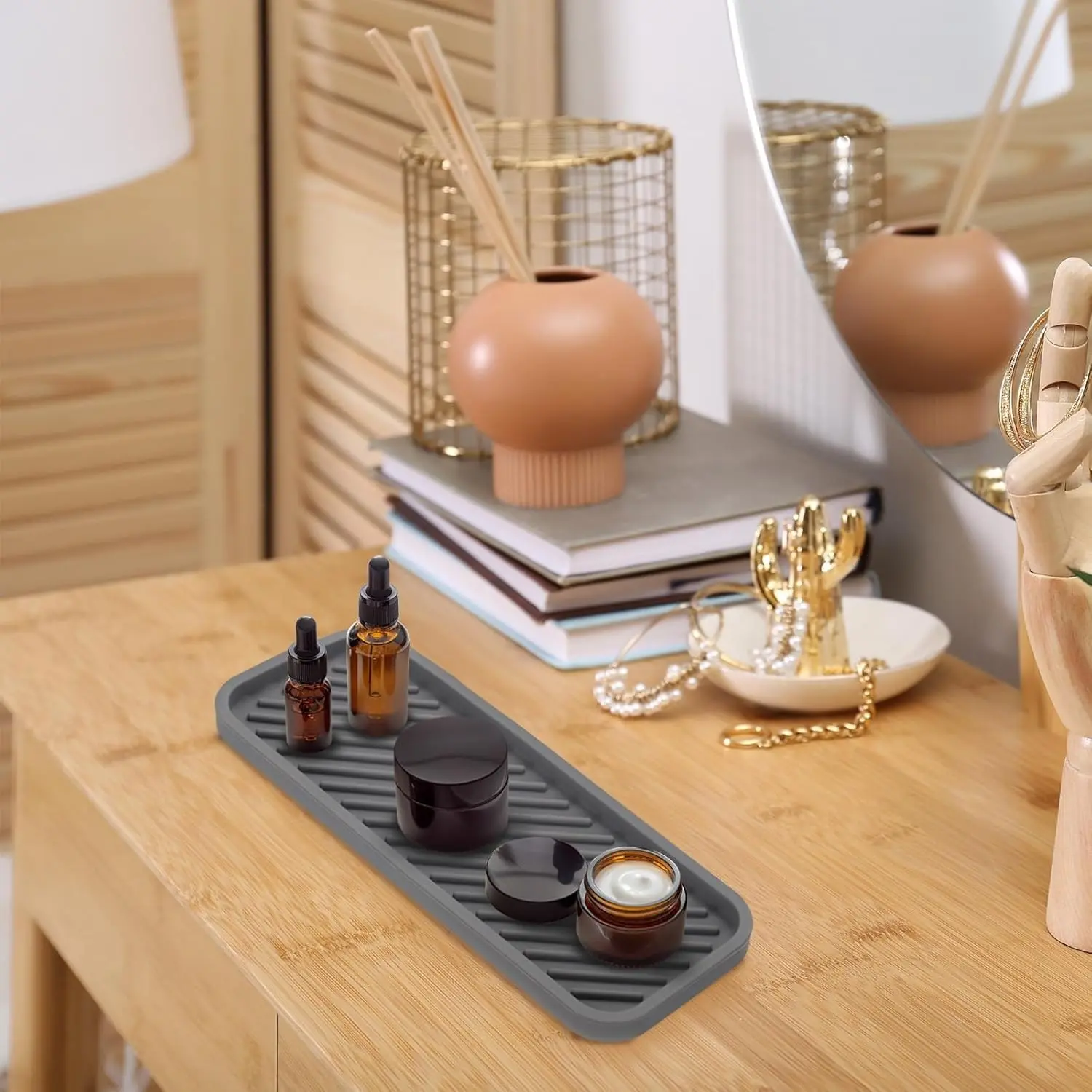 Lifewit Bathroom Counter Organizer Makeup Corner Stand with Perfume Tray, Cosmetic Skincare Shelf, and Storage for Bedroom, Dresser, and Kitchen Home Goods Large Capacity
