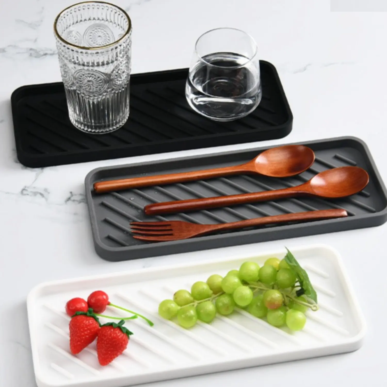 Homedailyess Silicone Bathroom Tray, 9x3.5 Inches, Soap Dish Included, Ideal for Bathrooms, Dressing Tables, Kitchen Sinks, Sponge Storage