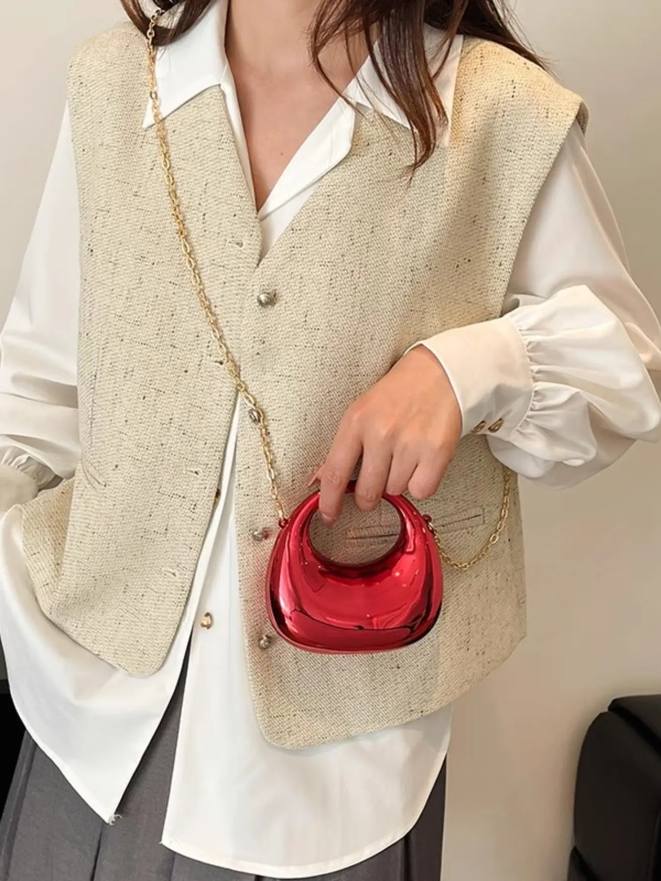 【Crossbody Option】: Features a chain strap for easy crossbody wear.