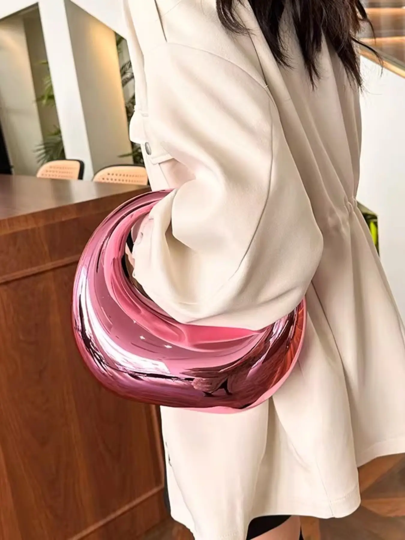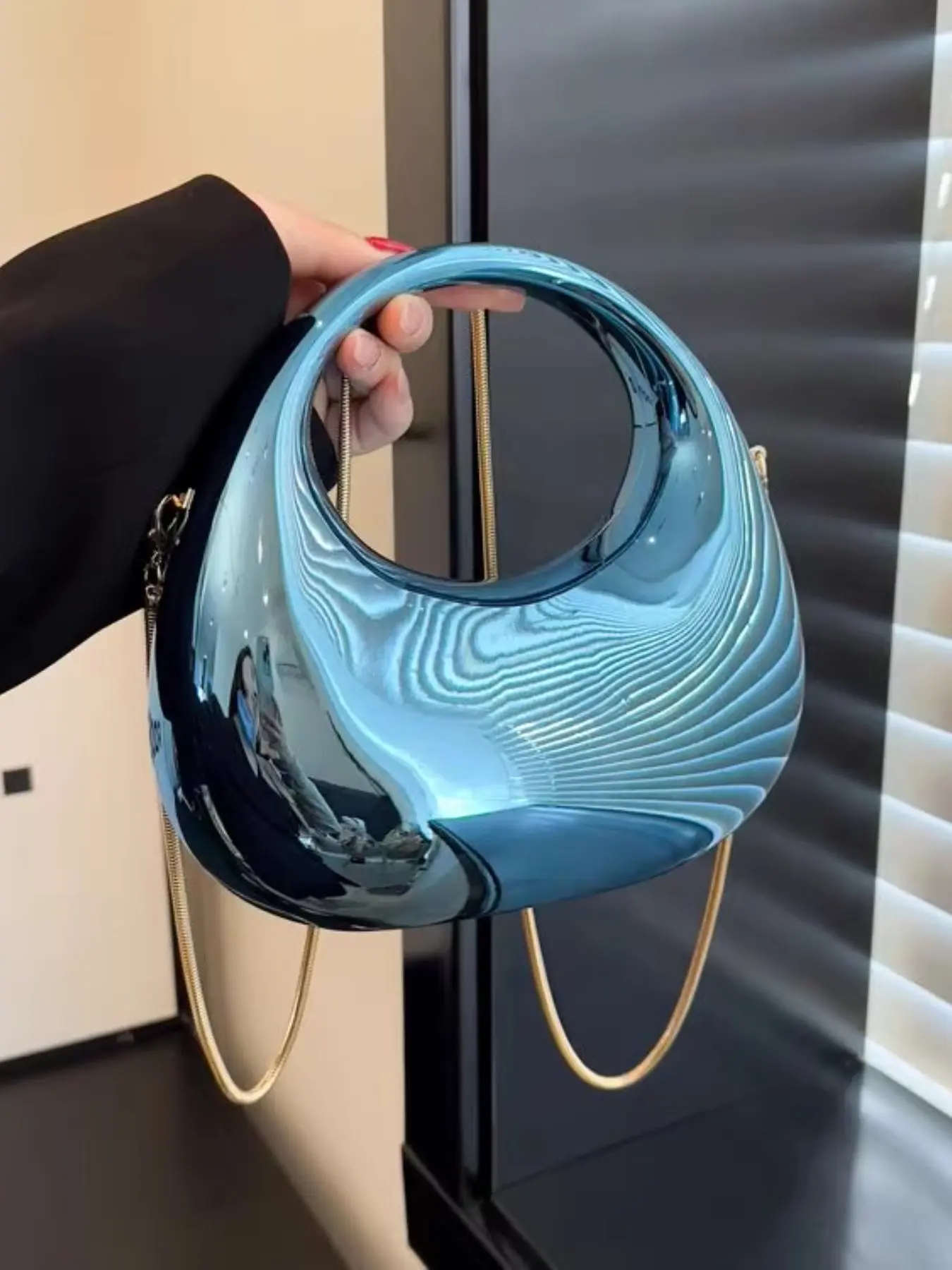 Sweet Cool Mini Acrylic Bag, Design Sensible Small Wallet, Single Shoulder Crossbody Chain Coin Accessory, Candy Color Shell Glossy Moon Box Party Handbag