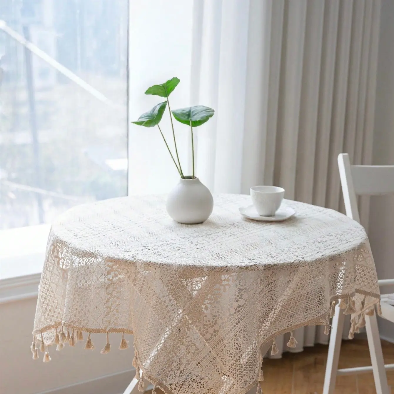 1 pc Fresh Cotton Flower Tablecloth, Cute Farmhouse Style, Square and Round Sizes Available, Home Decor for Cabinets and Nightstands