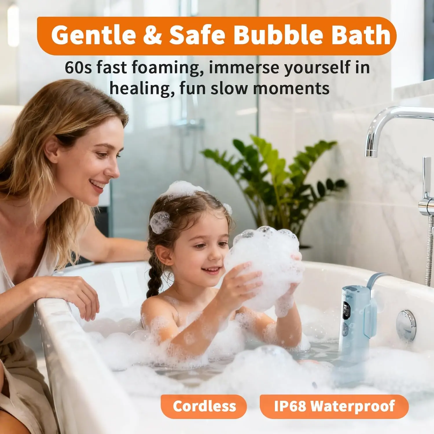 ·Safe & Reliable Spa Experience: This bath jets for tub head features a wireless design, eliminating worries about wire hazards. It has a built-in 2600mAh high-capacity battery. A single full charge provides up to 5 hours of continuous use. Bubble bath for women with an IP68 waterproof body that withstands short-term immersion, it ensures bathroom safety. Enjoy a relaxing bubble bath in the comfort of your bathtub