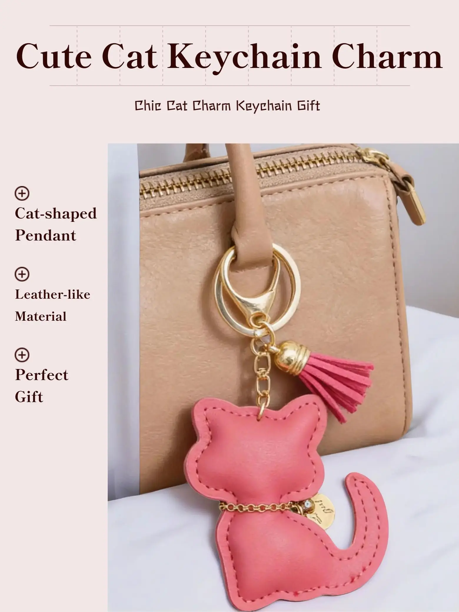 Elegant Cat Shaped Keychain PU Leather Bag Charm, Cute Kitten Decoration, Perfect Gift for Women and Girls, Birthday, Special Occasions