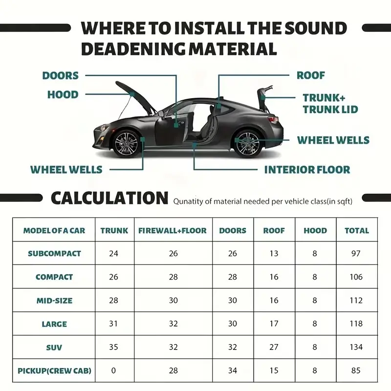 10-Pack Car Soundproofing Mats for Engine Hood - Waterproof, Oil-Resistant Foam Noise Reduction Accessories