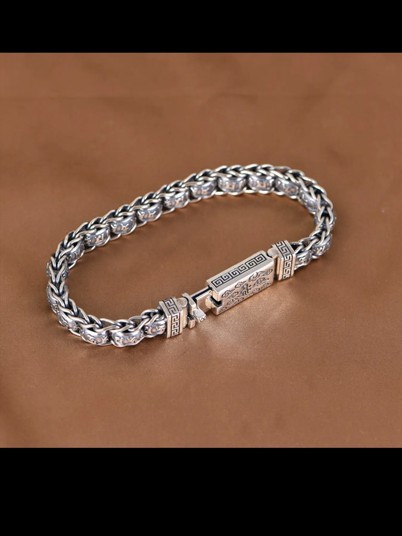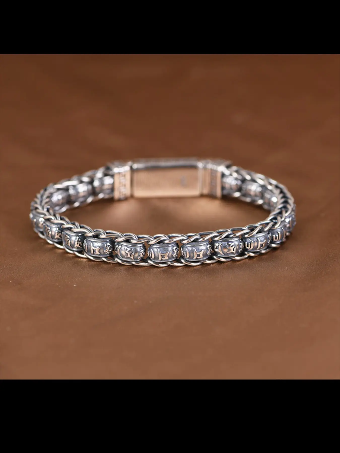 New Handmade Braided High-End Road Luck Bracelet for Men, Six-Word Mantra Lucky Bead, Vintage Jewelry Accessory