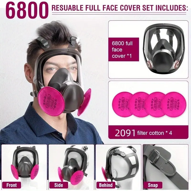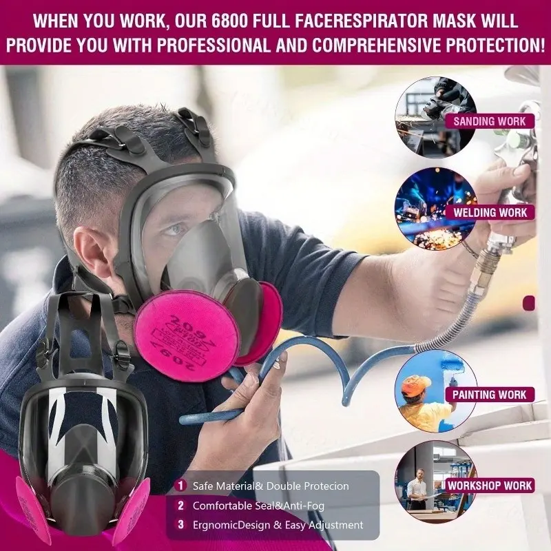 ●Wide Range of Application - The full face cover can block a variety of harmful substances, and there are irritating vapors/gases such as chemicals, glass, metal, paint, agriculture, formaldehyde, etc.