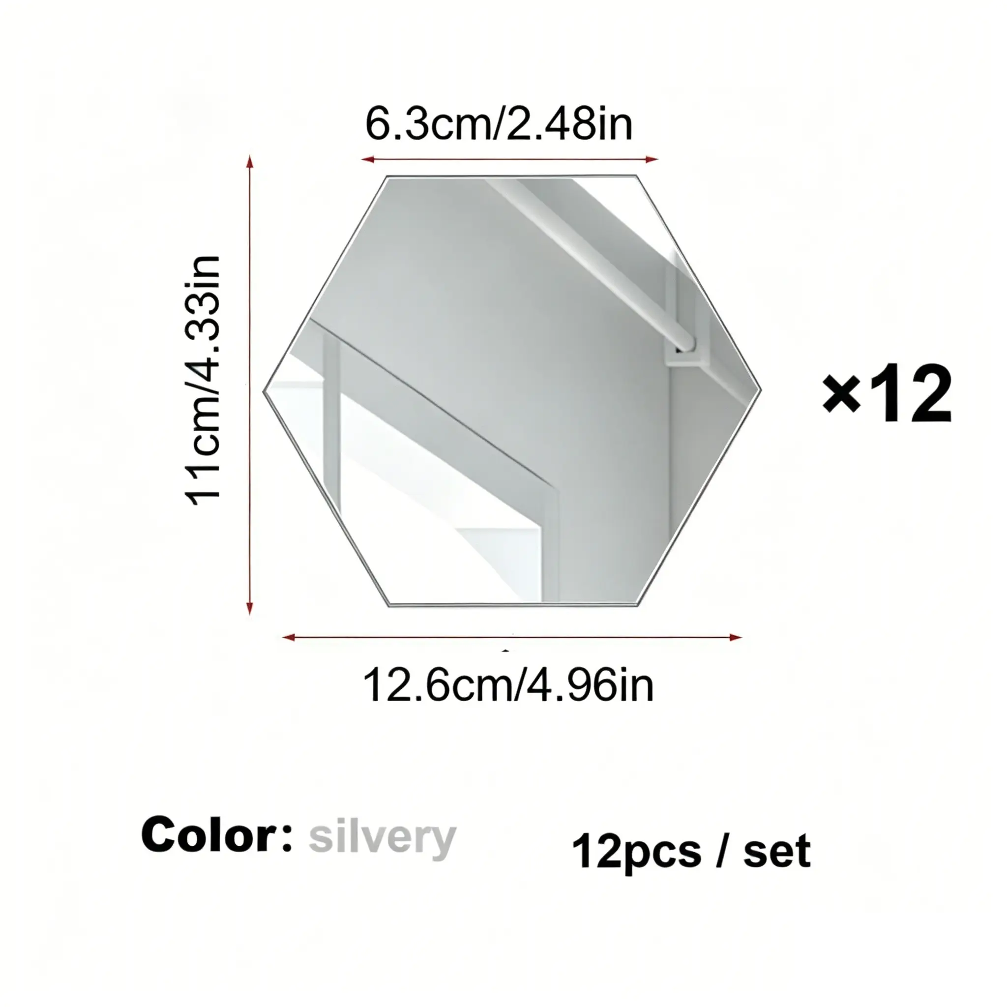 12Pcs Hexagon Acrylic Mirror Wall Stickers, 3D Self-Adhesive DIY Hexagonal Mirror Wall Decals, Modern Minimalist Nordic Style Shatterproof Wall Art Decor for Living Room Bedroom, Make Room Look Bigger, Easy Install