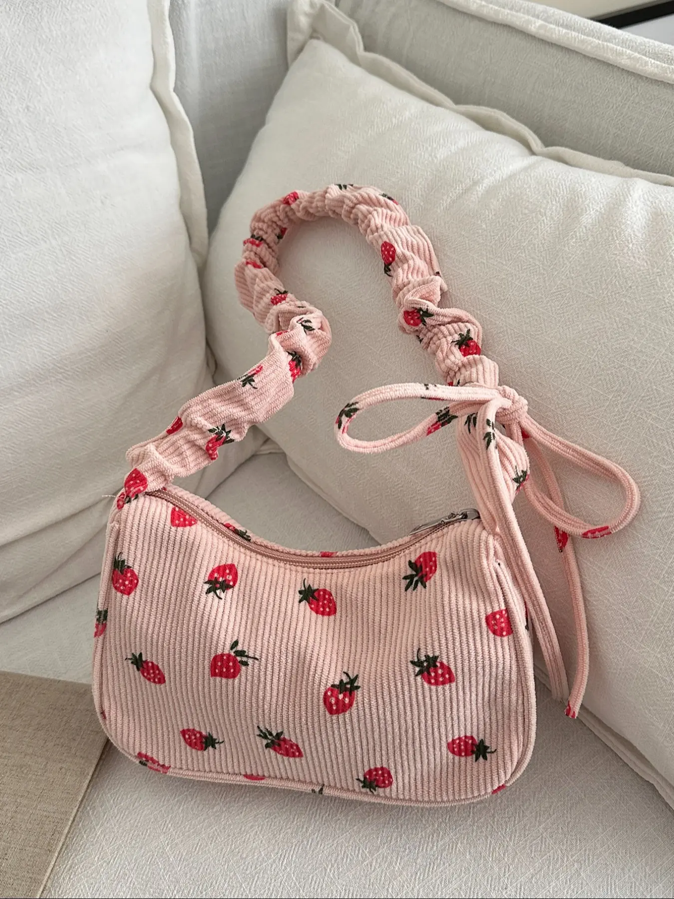 5. Cute Strawberry Print Underarm Bag, Drawstring Design, Soft Casual Fruit Pattern Shoulder Clutch, Versatile Handbag for Women