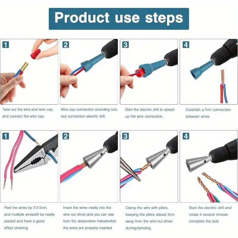 【Dual Function】: Two types of drill bits cater to different crimping requirements, making them suitable for a wide range of scenarios and enabling efficient wire processing.