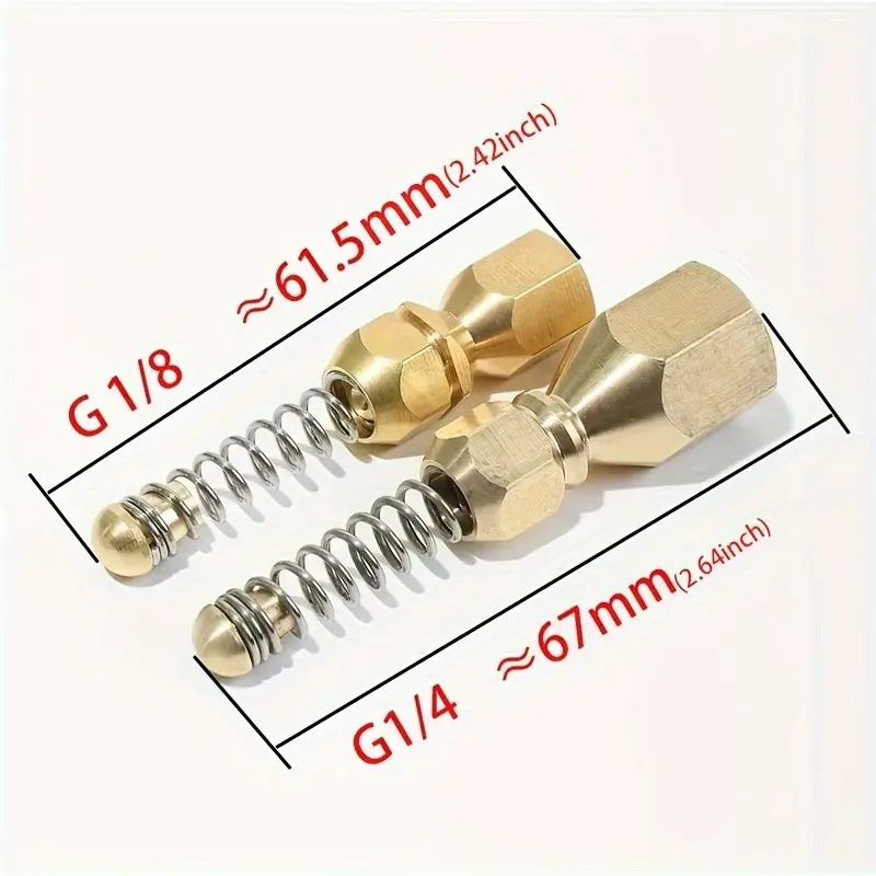 High-Pressure Drain Cleaning Nozzle, G1/4 and G1/8 Threaded, Spring Head Design, Unblock Sewer Pipes, Waste Water Blockage Tool