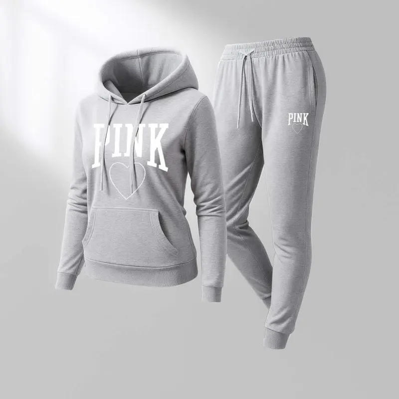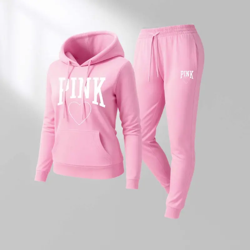 ✨ Elevate your casual wardrobewith this Women's Pink Heart Print set.It includes a hoodie and drawstring track pants, perfect for autumn and winter.Ideal for everyday wear, indoor and outdoor activities.The set is crafted from 100% polyester, ensuring softness and breathability.🌟