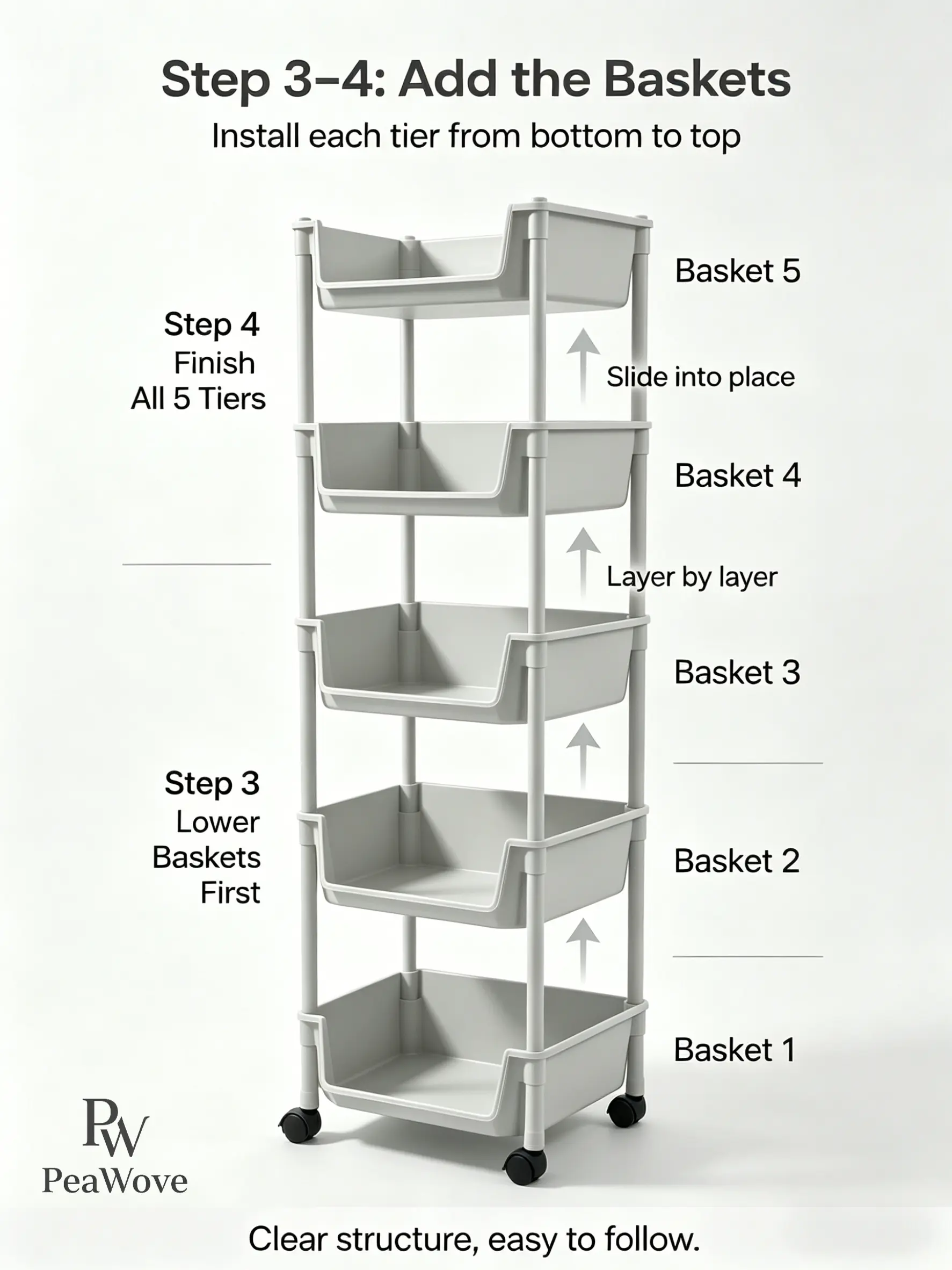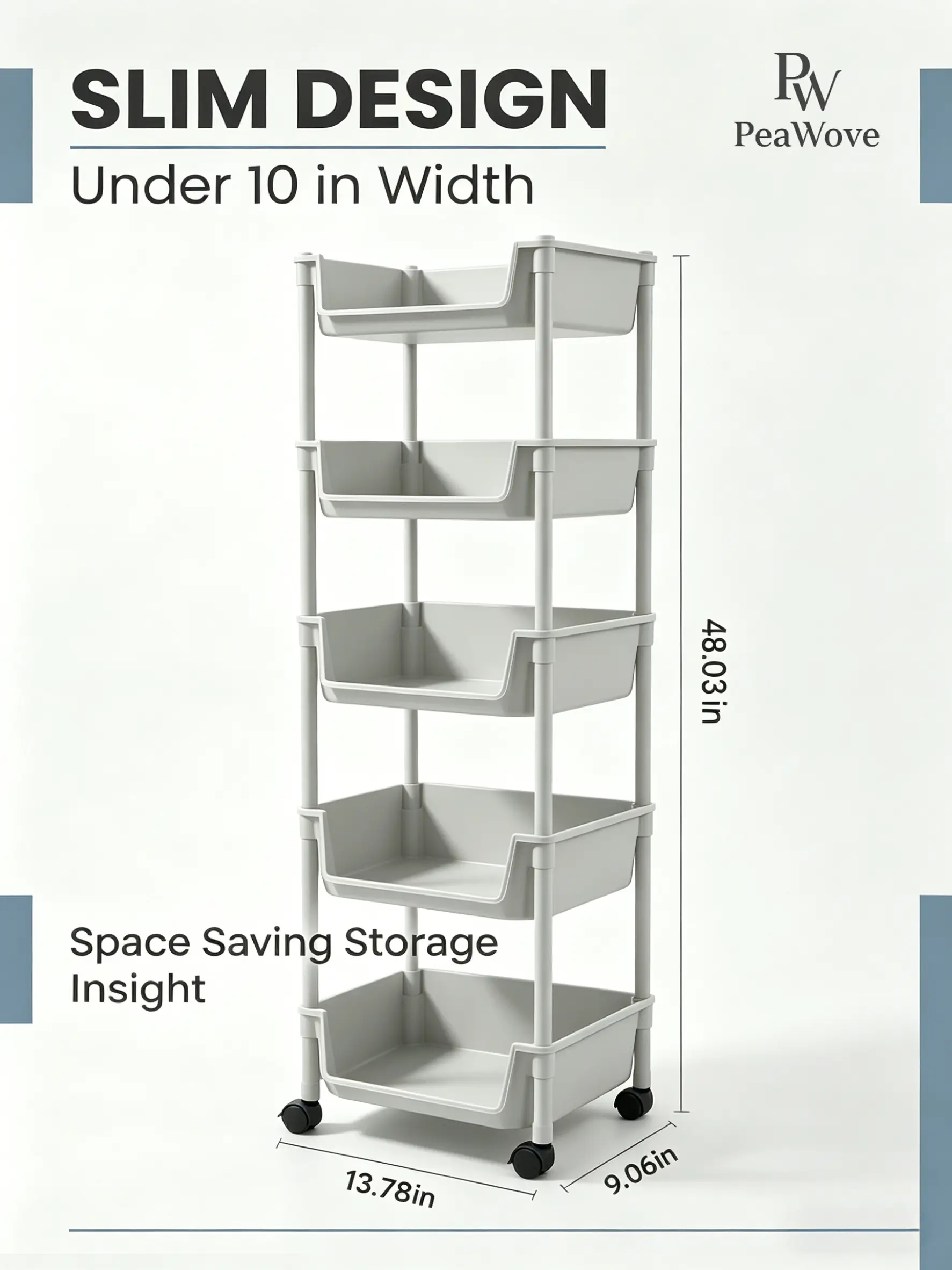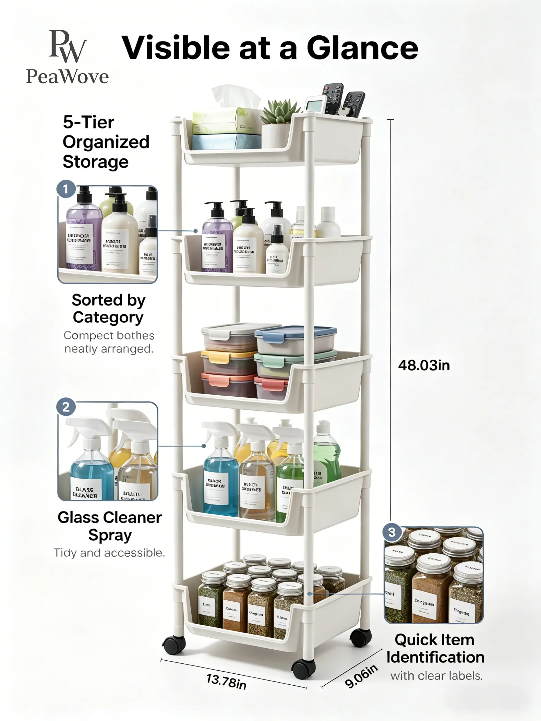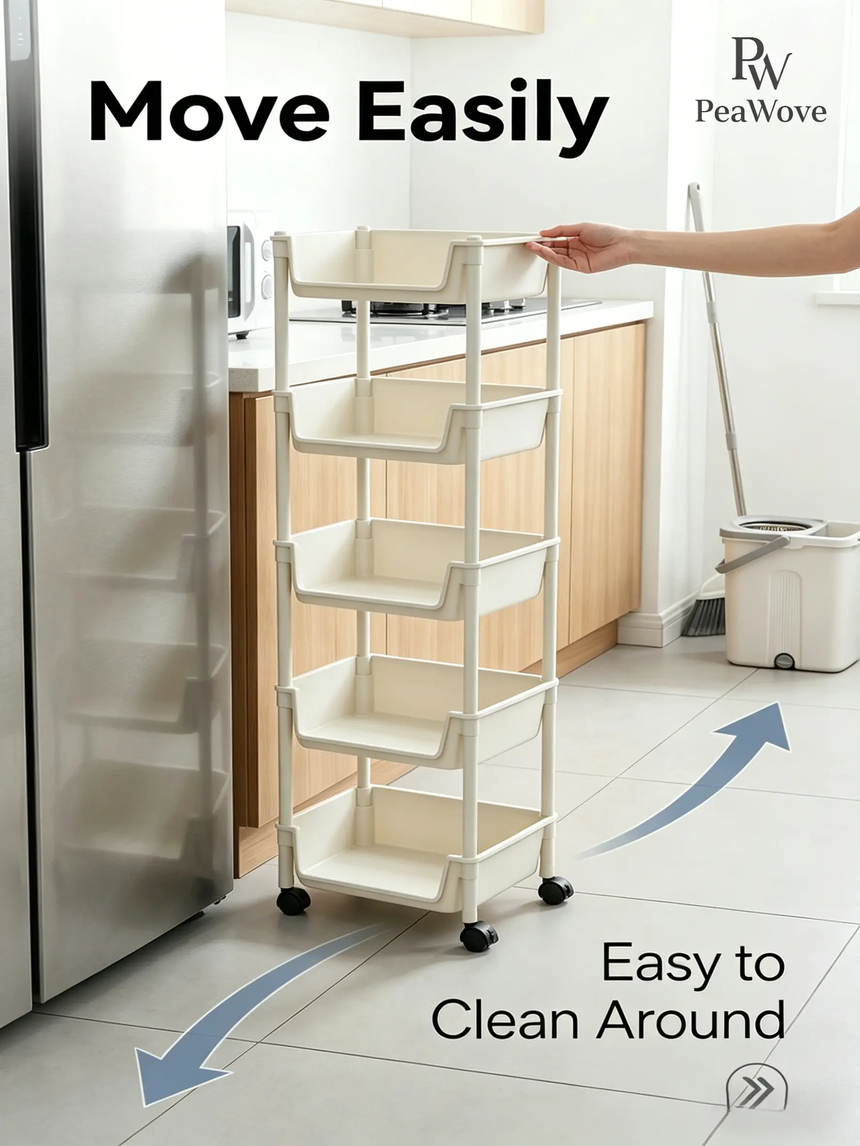 Bring minimalist order to your home with the PeaWove Slim Rolling Storage Cart. Thoughtfully designed to fit tight gaps and small areas, this 5-tier organizer combines sleek modern style with practical functionality to keep your space tidy and clutter-free.