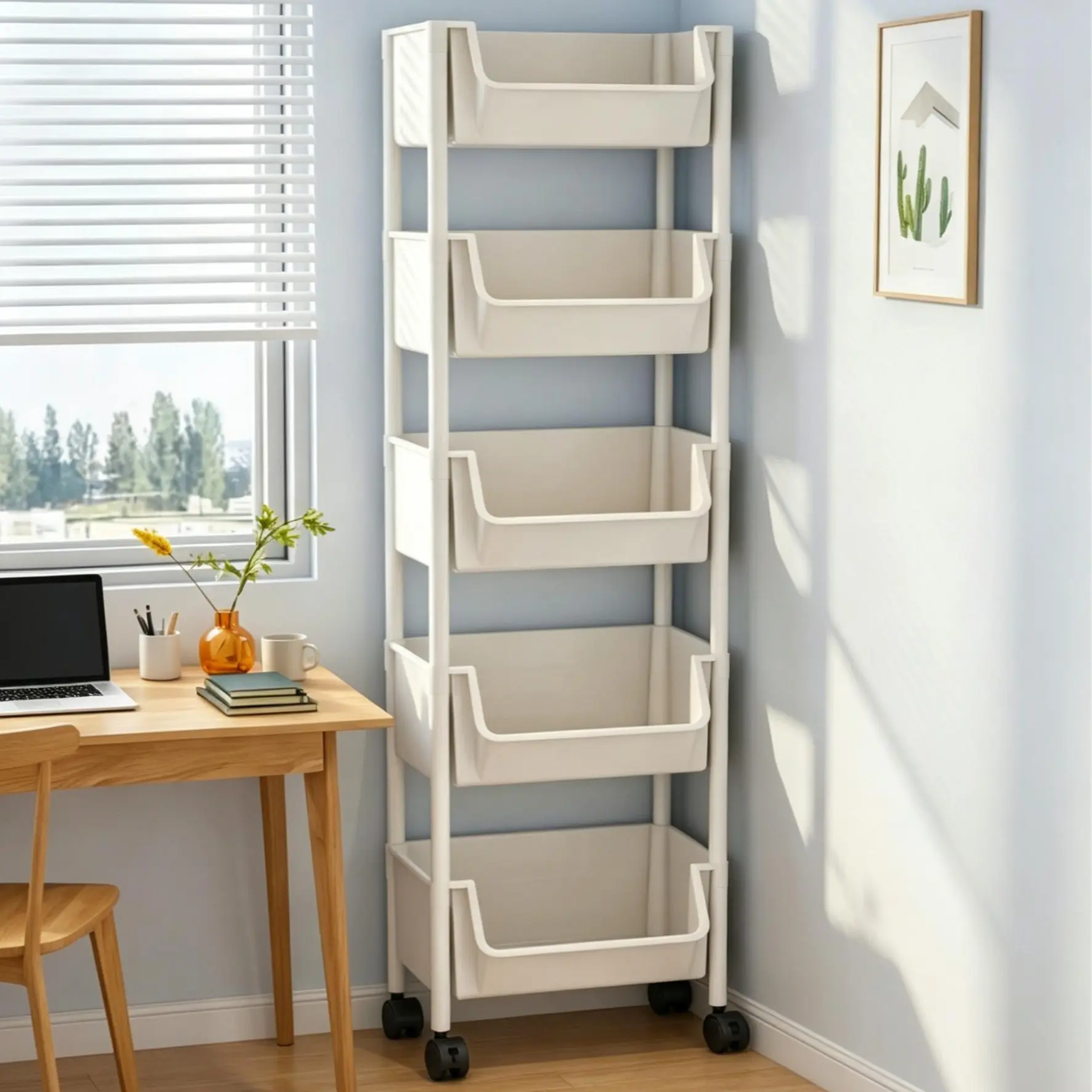 5-tier open storage for toiletries, snacks, produce, toys, books, and daily essentials