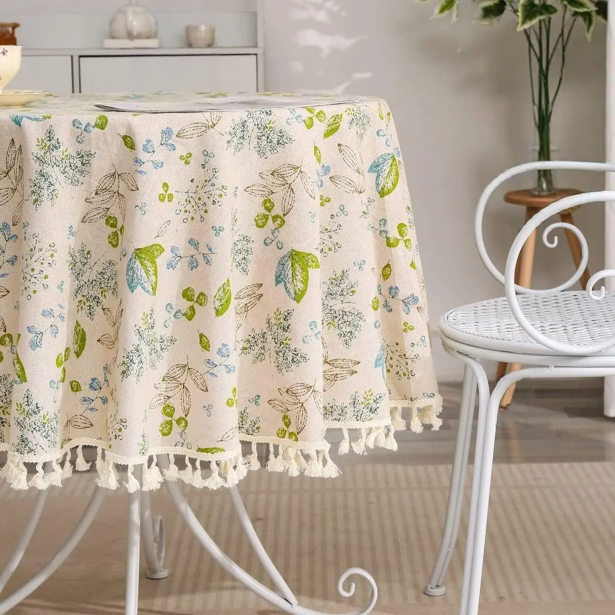 1pc Blue Branch Leaf Round Tablecloth, Farmhouse Style, Durable Material, Kitchen Decor, Party, Picnic, Wedding Table Setting