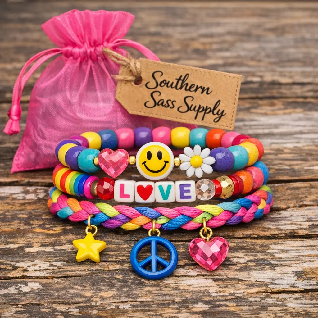 Sometimes, you just need a little sass without going all in. Our 3 Bracelet Sass Stack is the perfect pick-me-up. Whether treating yourself or surprising someone, these bracelets add a touch of personality. Each stack is hand-picked with fun, stylish designs. Perfect for everyday wear, small gifts, or trying out your first sass stack.