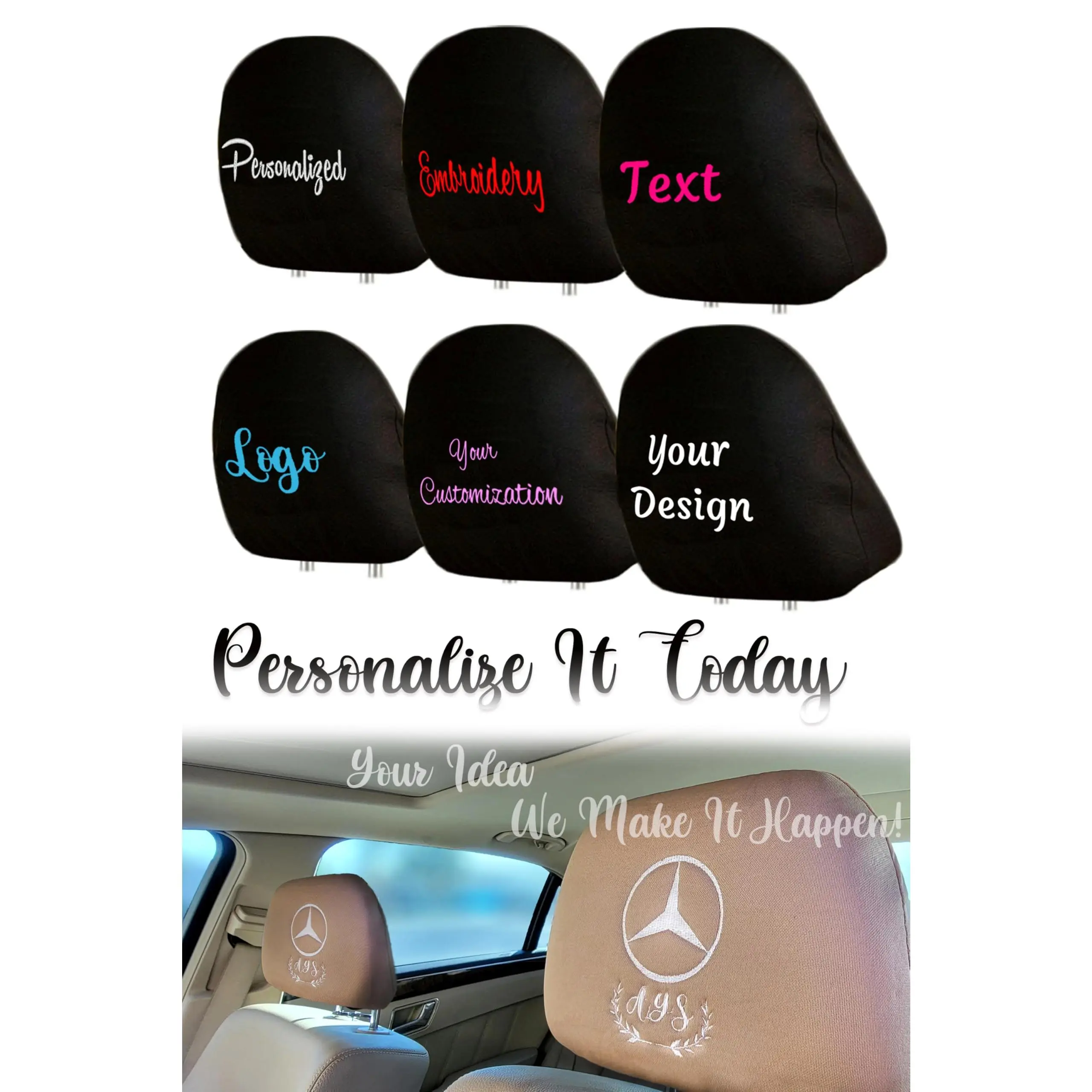 Upgrade Your Cars Style with Custom Embroidery Headrest Covers – 4+1 Bundle Set!