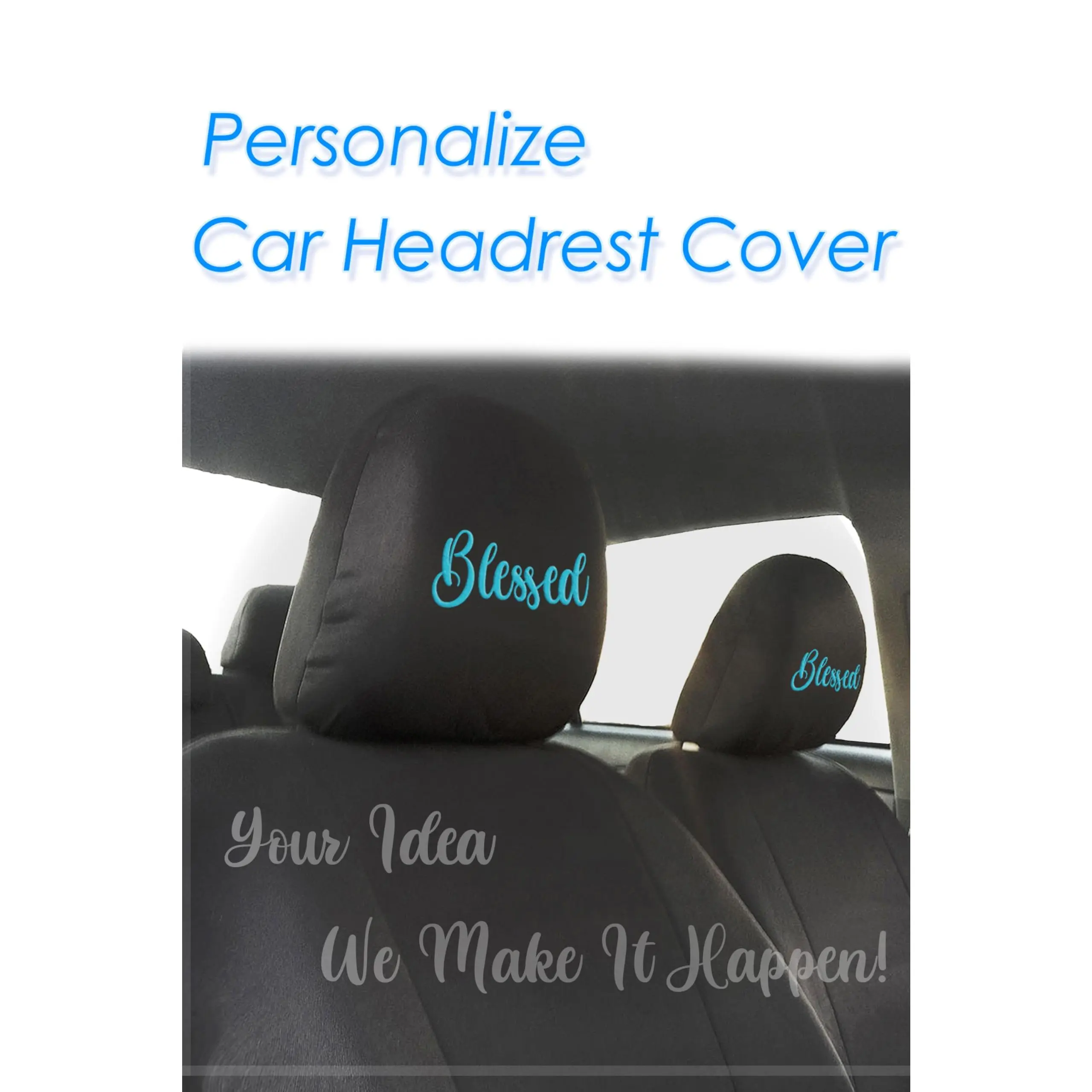 Each order includes two pairs (4 pieces) of personalized headrest covers and a bonus piece of plain headrest cover.