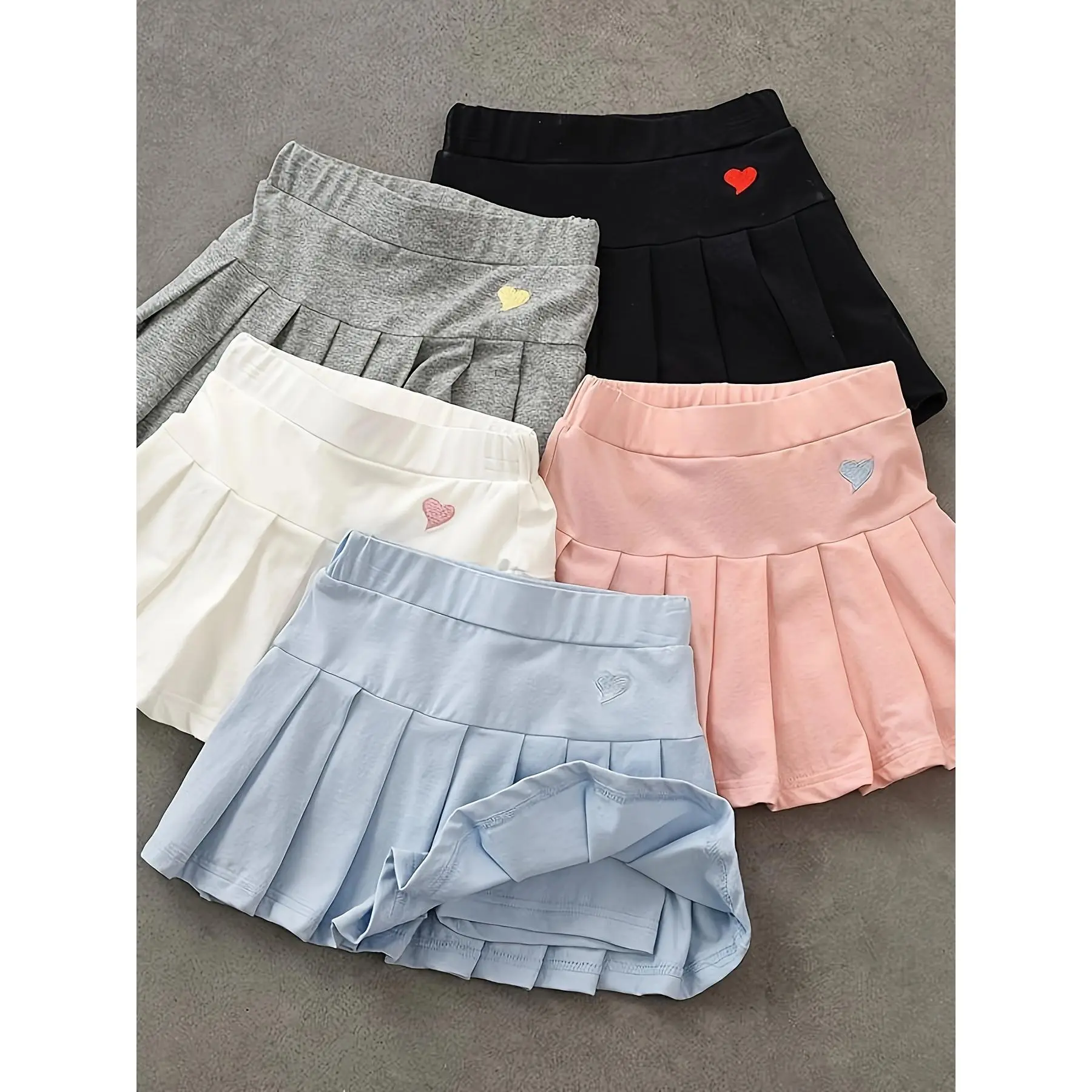 (New)[Girls' Skort Set] PEPPY GIRL STUFF - 2026 Spring/Summer Girls' Pleated Skort 2pcs Set, High-Stretch Comfortable Soft Skort with Built-in Anti-See-Through Safety Shorts, Student Weekend Outing Casual Sports Skirt (gift)