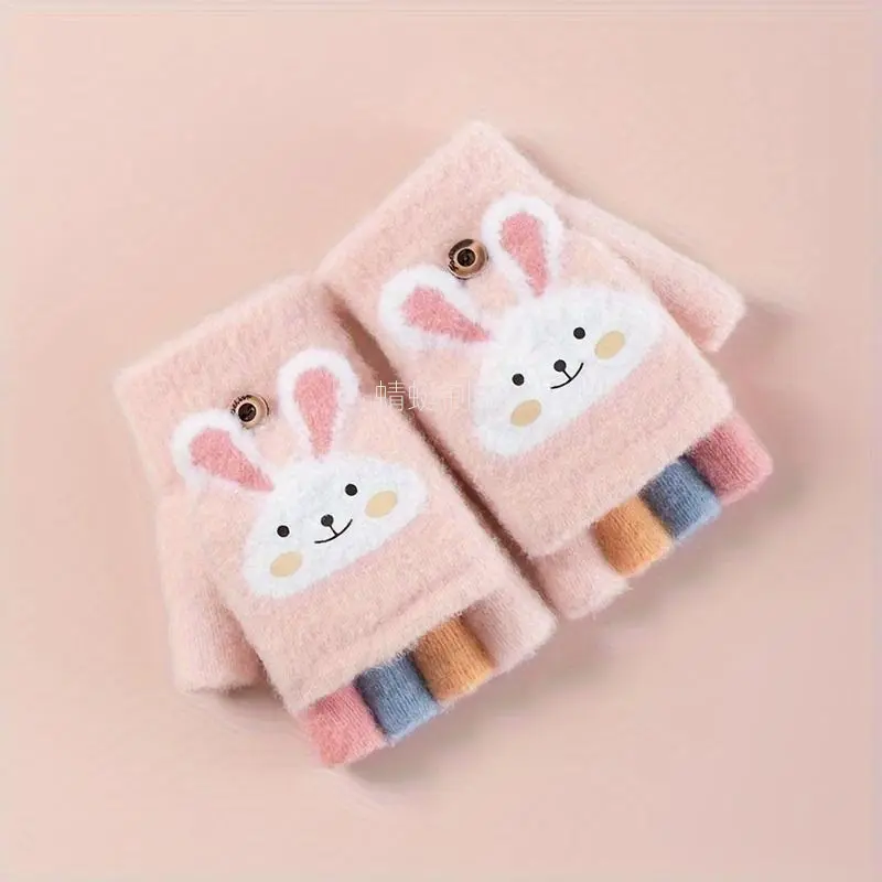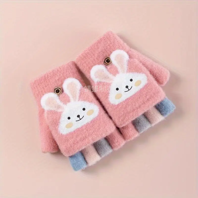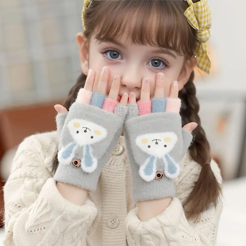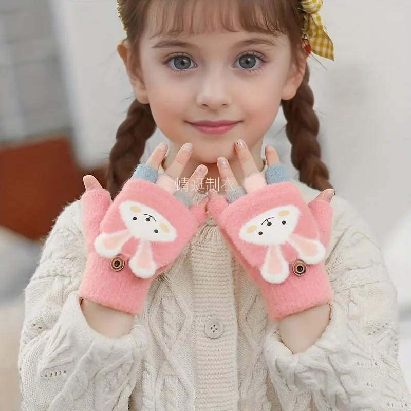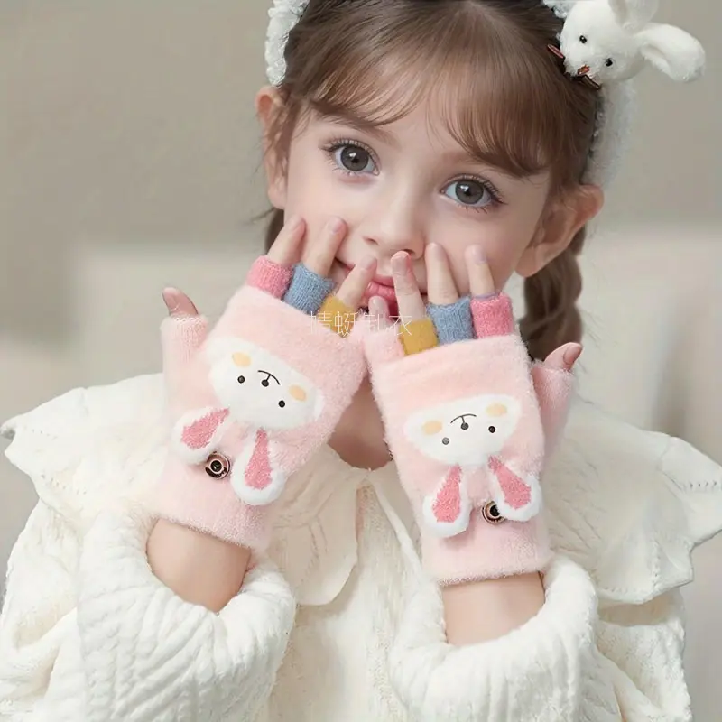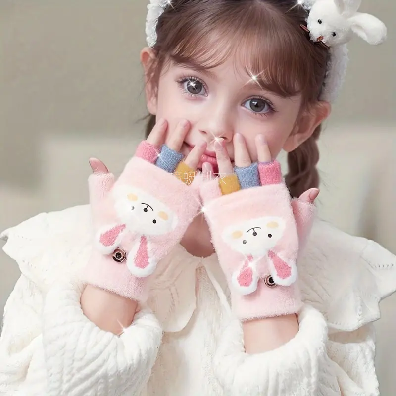 New1 Pair Fleece-Lined Cozy Design Half-Finger Flip Gloves, Warm Winter Outdoor Play and Daily Use -4 °
