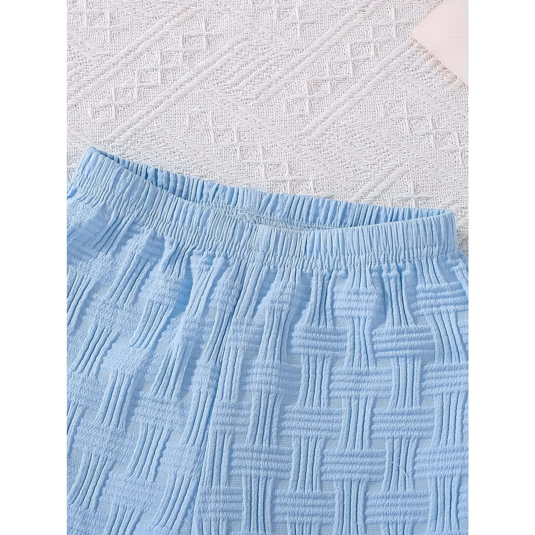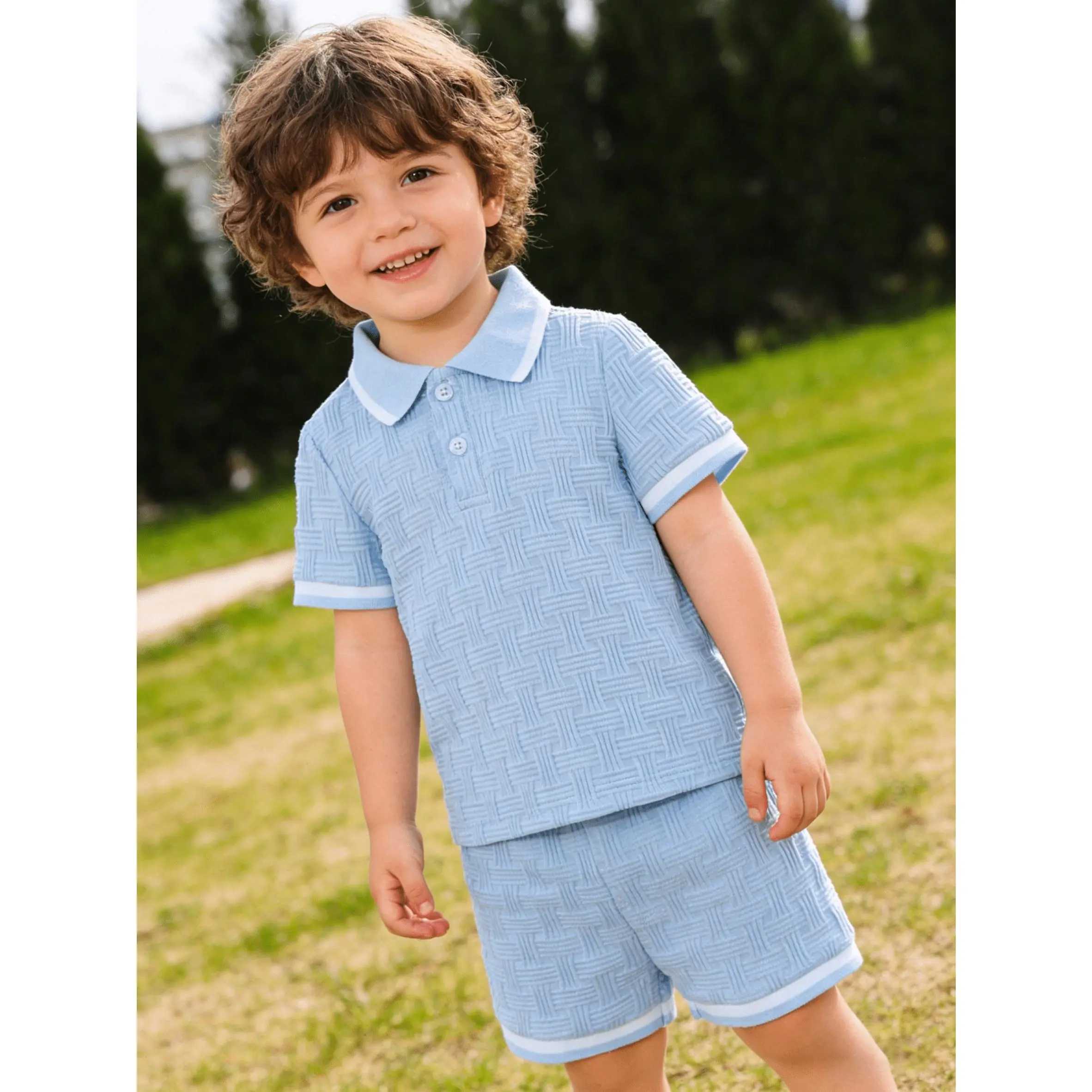 5. (New)Boys' Two-Piece Shirt and Shorts Set, Light Blue Summer Short-Sleeve Shirt and Shorts Combo, Nordic Minimalist Style French-Style Casual Fashion, Perfect for Outdoor