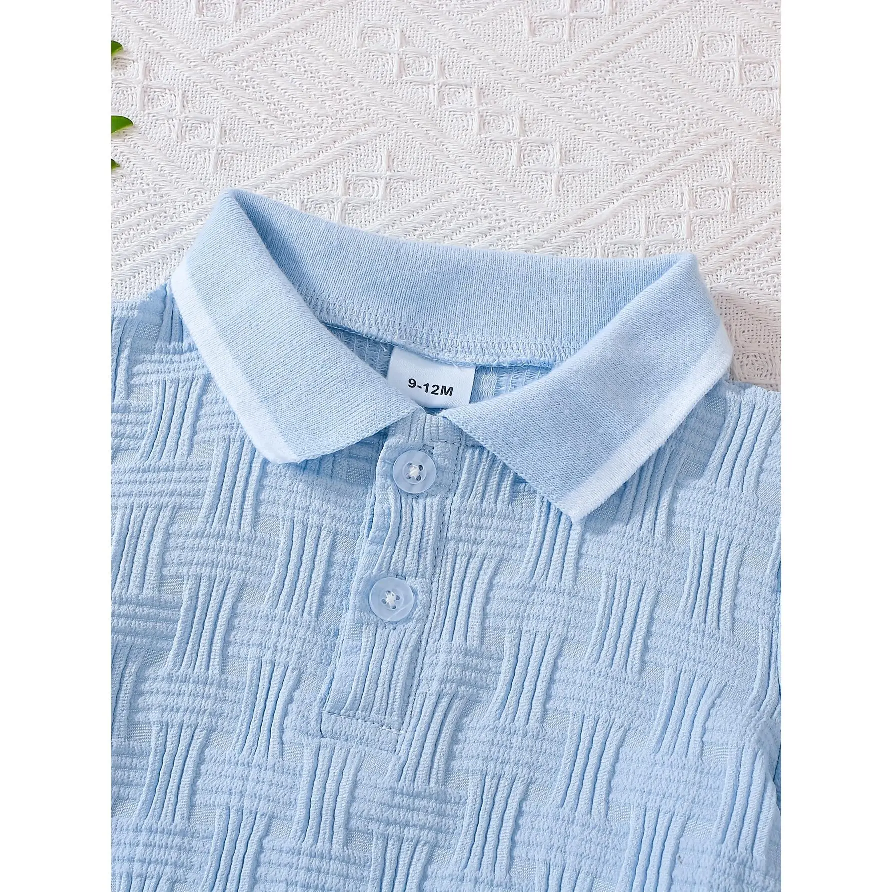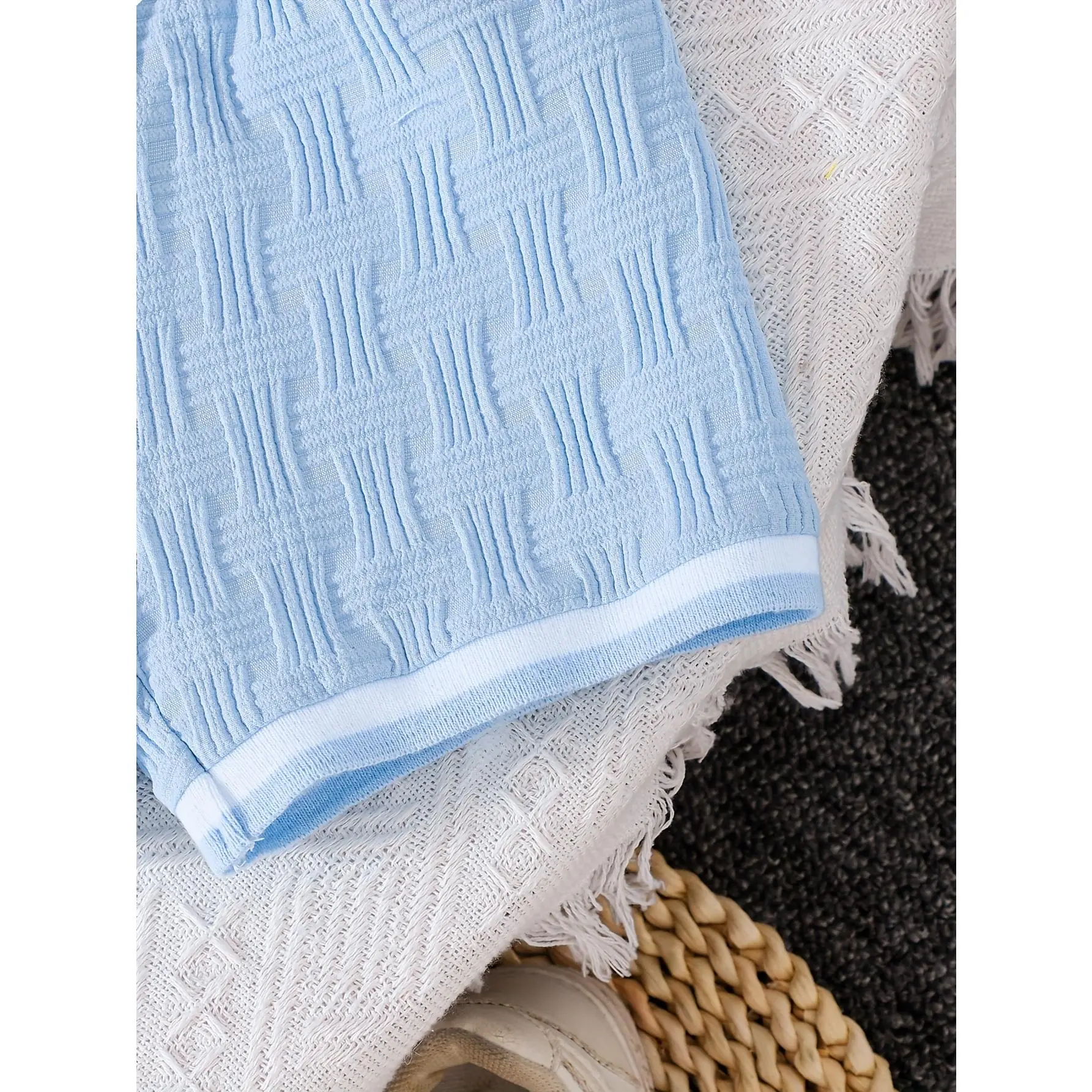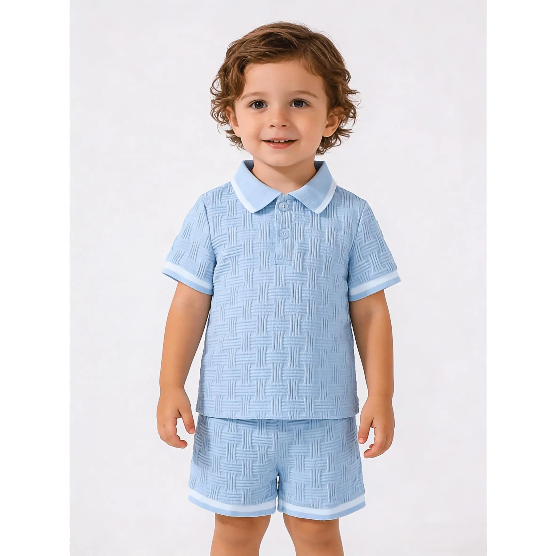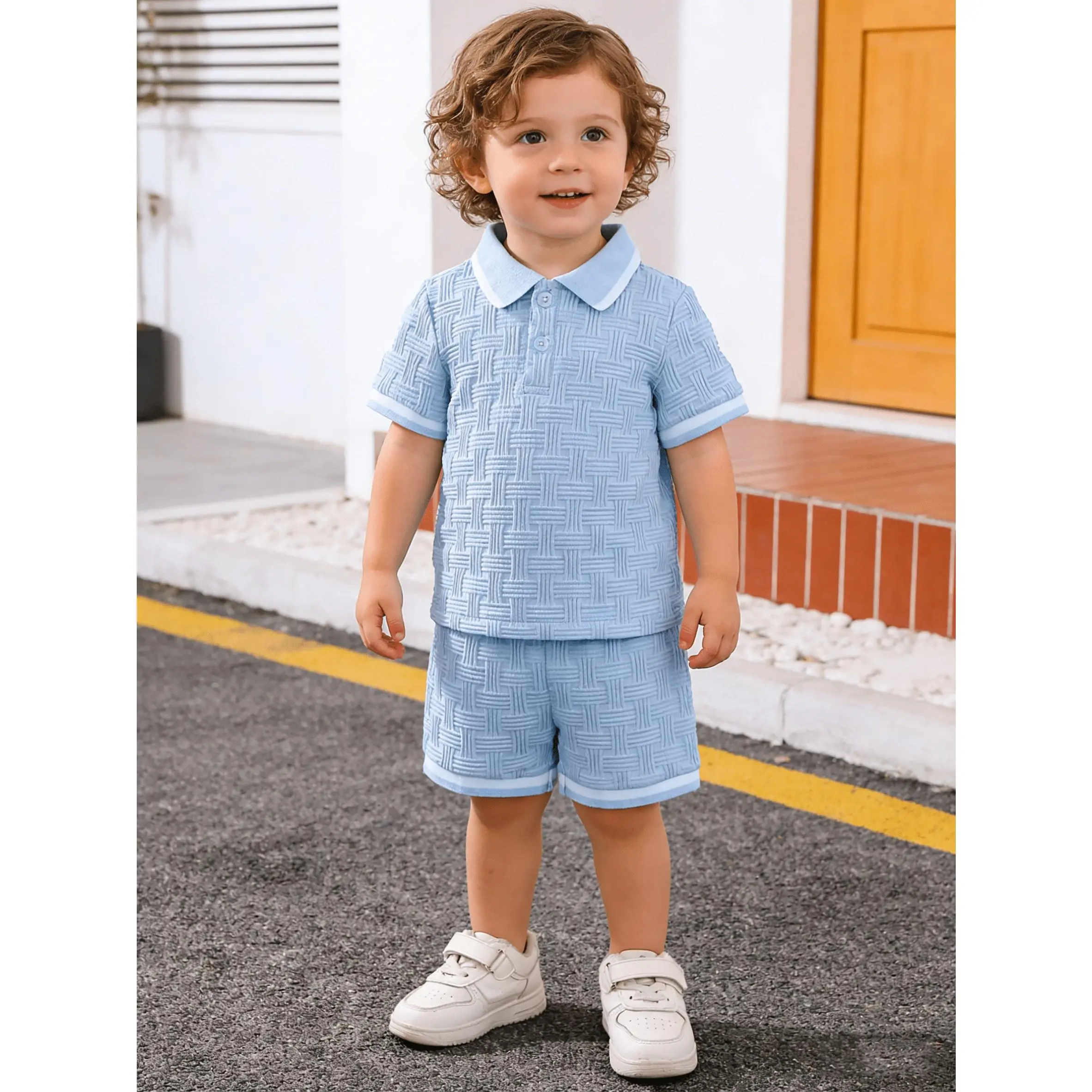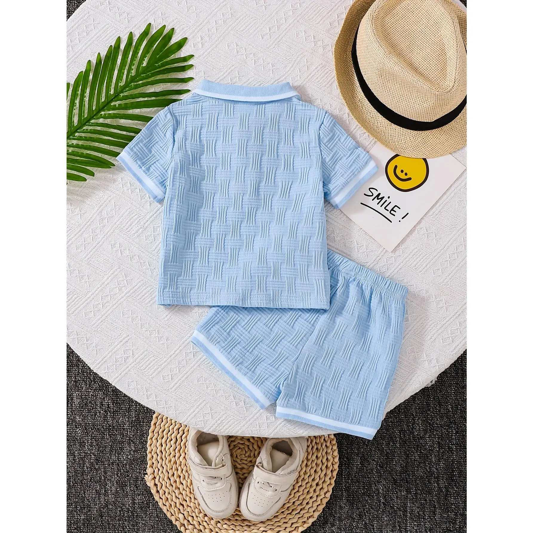 (New)Boys' Two-Piece Shirt and Shorts Set, Light Blue Summer Short-Sleeve Shirt and Shorts Combo, Nordic Minimalist Style French-Style Casual Fashion, Perfect for Outdoor