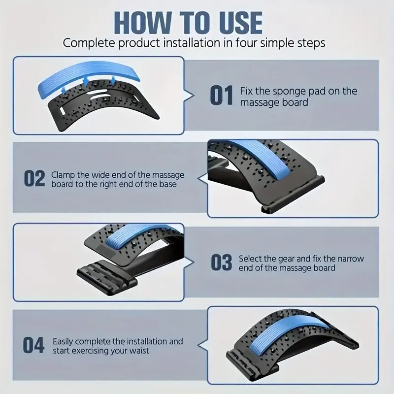 Adjustable Back Extender and Posture Corrector, Ergonomic Lumbar Support with Massage, Safe Handle, Office Car Home Use, Durable Design